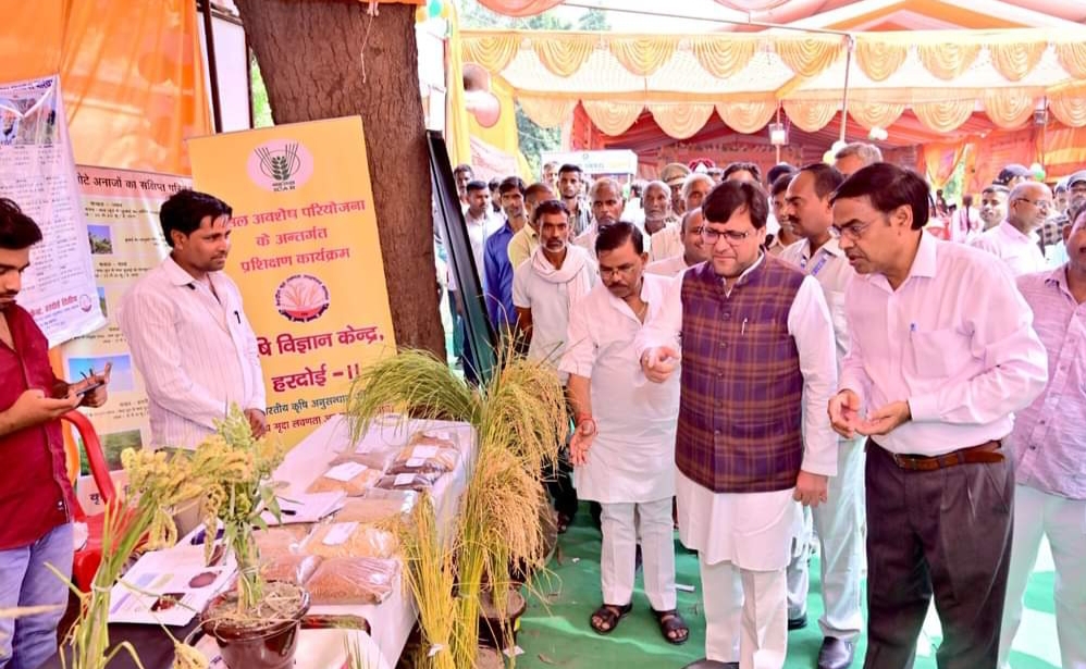 जनपद में कृषि सूचना तंत्र के सुदृढ़ीकरण एवं कृषक जागरूकता कार्यक्रम योजनान्तर्गत पारम्पारिक विराट किसान मेला एवं प्रदर्शनी का (चार दिवसीय) आयोजन सम्भागीय कृषि परीक्षण एवं प्रदर्शन केन्द्र, निकट बिलग्राम चुंगी में किया जा रहा है। मा० आबकारी एवं मद्य निषेध राज्य मंत्री (स्वतंत्र प्रभार) नितिन अग्रवाल, द्वारा मेले एवं प्रदर्शनी का शुभारम्भ दीप प्रज्वलन कर किया गया तथा कार्यक्रम में विभिन्न विभागों द्वारा लगाये गये स्टालों का अवलोकन मा० मंत्री जी एवं किसानों द्वारा किया गया। मुख्य अतिथि द्वारा किसान भाईयों का देश की अर्थव्यवस्था एवं खुशहाली में योगदान के लिए आभार प्रकट किया गया। उन्होंने कहा कि मा० प्रधानमंत्री व मा० मुख्यमंत्री जी द्वारा किसानों की आमदनी दोगुनी करने के लिए अनेकों योजनायें चलायी जा रही है। प्रदेश सरकार द्वारा कृषकों को उच्च गुणवत्तायुक्त फसलों के बीज निशुल्क मिनीकिट्स एवं अनुदान के माध्यम से उपलब्ध कराये जा रहे है। सरकार द्वार गौ आधारित प्राकृति खेती को बढ़ावा देने के लिए योजनाएं चलायी जा रही है, जिसके माध्यम से घनीजीवामृत, जीवामृत बीजामृत अग्निअस्त्र बनाने का प्रशिक्षण प्रदान कर उच्च गुणवत्ता युक्त कृषि उत्पादन के लिए प्रोत्साहित किया जा रहा है। मा० प्रधानमंत्री जी के द्वारा श्री अन्न फसलों की खेती को बढ़ावा देकर किसानों की आय एवं लोगो का स्वास्थ्य सुरक्षित करने के लिए कदम उठाया है, जिसके अन्तर्गत कृषकों को निःशुल्क श्रीअन्न फसलों के बीज उपलब्ध कराये जा रहे। उन्होने कहा कि हमारी सरकार द्वारा छः वर्षों में विभिन्न फसलों के न्यूनतम समर्थन मूल्य में दोगुने से ज्यादा की वृद्धि की गयी है। प्रधानमंत्री किसान सम्मान निधि योजना के अन्तर्गत किसानों के खाते प्रतिवर्ष छः हजार रूपये सीधे खाते में भेजने का काम किया है, जिसमें से आज माननीय प्रधानमंत्री जी द्वारा 18वीं किस्त हरदोई के 6 लाख 50 हजार किसानों के खाते में 2000 रूपये किस्त भेजी गयी। उन्होंने किसान भाईयों से अपील की कि पराली दो, खाद लो योजनान्तर्गत वह अपने खेत में फसल अवशेष (पराली) न जलाये और पराली को अपने नजदीकी गौशालाओं में दान कर गोबर की खाद प्राप्त करे। प्रदेश सरकार द्वारा उन्नत कृषि तकनीकी को बढ़ावा देने के लिए 80 प्रतिशत एवं 50 प्रतिशत अनुदान पर कृषि यंत्र उपलब्ध कराये जा रहे है तथा सिंचाई की लागत में कमी करने के लिए पी०एम० कुसुम (सोलर पम्प) योजना के अन्तर्गत 60 प्रतिशत अनुदान पर सोलर पम्प भी उपलब्ध कराये जा रहे है। उक्त अवसर पर मा० मंत्री जी द्वारा ग्राम सकरा खण्ड बावन के कृषक महेश प्रसाद सुमन को कस्टम हायरिंग सेन्टर में ट्रैक्टर की चाभी एवं कृषक गंगाराम पुत्र माखन व महेश प्रसाद पुत्र होर