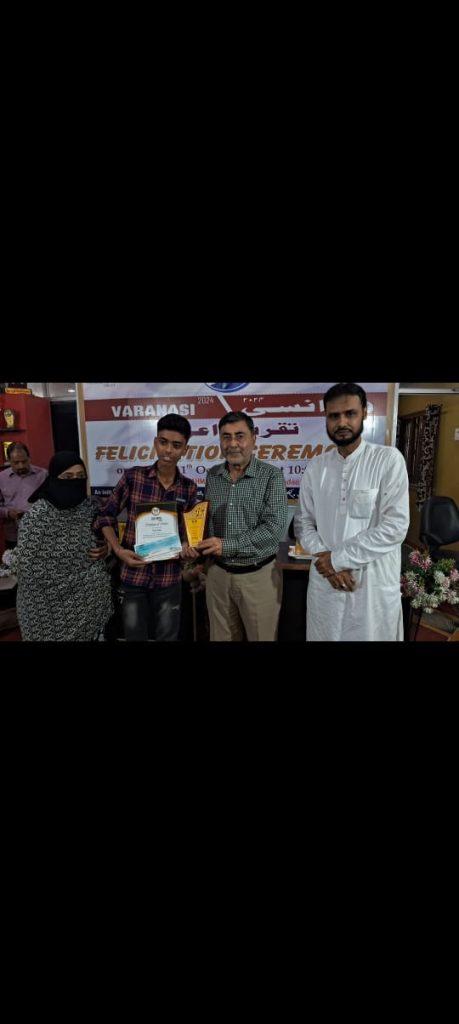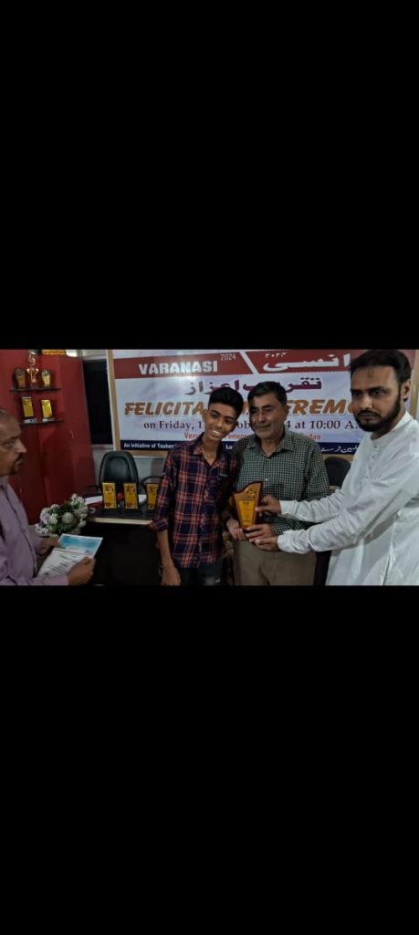 दूसरे रैंक एक हजार का चेक और सर्टिफिकेट मेडल 3 कुमेल मेंहदी. पिता मेंहदी हसन महाम इन्टरनेशनल स्कूल दूसरा रैंक एक हजार का चेक सर्टिफिकेट और मेडल 4 ताबिश अब्बास. पिता मोहम्मद कासिम .महाम इन्टरनेशनल स्कूल तीसरा रैंक एक हजार का चेक और सर्टिफिकेट दमेडल 5 मालिक अश्हर.पिता फरहत एजाज .एस टी जोजेफ कान्वेंट स्कूल उत्तर प्रदेश मे फस्ट रैंक दस हजार का चेक गोल्ड मेडल. सर्टिफिकेट 6 अली रजा. पिता कर्रार हुसैन.एस टी फ्रांसिस स्कूल रैंक दो .एक हजार चेक सर्टिफिकेट मेडल 7 मोहम्मद अस्करि जैदी. पिता सैय्यद साजिद जैदी. चिल्ड्रेनस एकेडमी रैंक तीन एक हजार चेक सर्टिफिकेट मेडल 8 सबिका जहरा. पिता सैय्यद वसीम रजा.बाल भारतीय स्कूल रैंक एक पर थीं एक हजार चेक सर्टिफिकेट मेडल के साथ सभी को सम्मानित किया गया