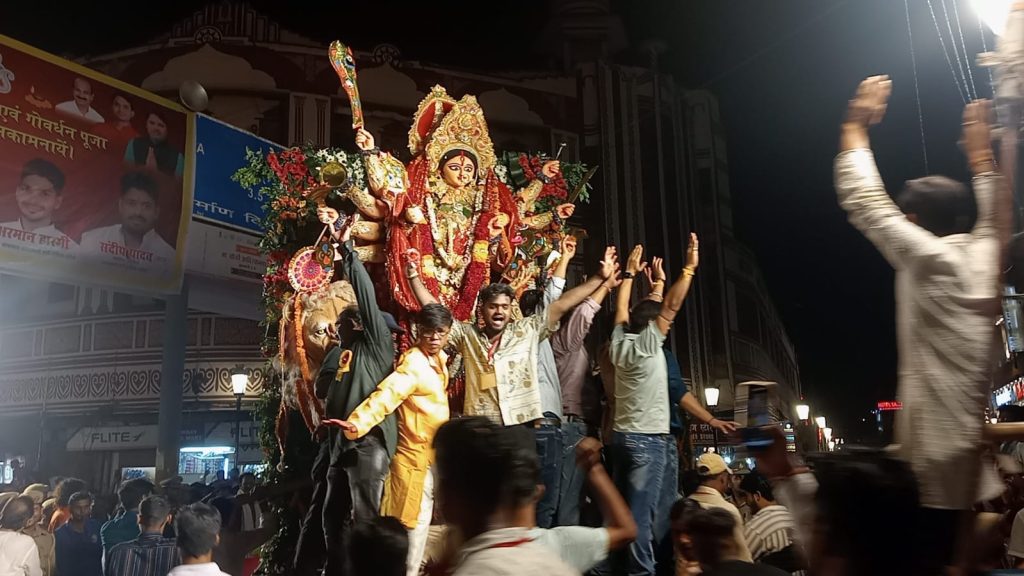 सुबह से छोटी प्रतिमा का विसर्जनशहर के विभिन्न इलाकों में छोटी प्रतिमाओं का विसर्जन सुबह 8 बजे से आरंभ हो गया हैं। प्रतिमा का विसर्जन शहर के अन्य विभिन्न हिस्सों में भी छोटी दुर्गा प्रतिमाओं के विसर्जन का सिलसिला दोपहर बाद शुरू हुआ।लक्ष्मीकुंड, मंदाकिनी कुंड, ईश्वरगंगी, संकुलधारा, पहाड़िया तालाब, गणेशपुर तालाब, विश्वसुंदरी पुल के पास कृत्रिम