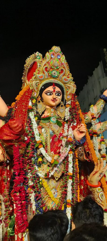वाराणसी में दुर्गा प्रतिमा विसर्जन, पुलिस प्रशासन द्वारा शांति पूर्वक संपन्न कराया गयागोल्डन क्लब दुर्गा प्रतिमा विसर्जन मे आरती करने के बाद महिलाओं ने एक दूसरे को सिंदूर, लगा और लगे-जयकारे लगाते हुए; पुलिस प्रशासन दिखी मुस्तैदशारदीय नवरात्र में विधि विधान से पूजन के बाद भगवती दुर्गा के प्रतिमा का विसर्जन हुआ। उत्तर