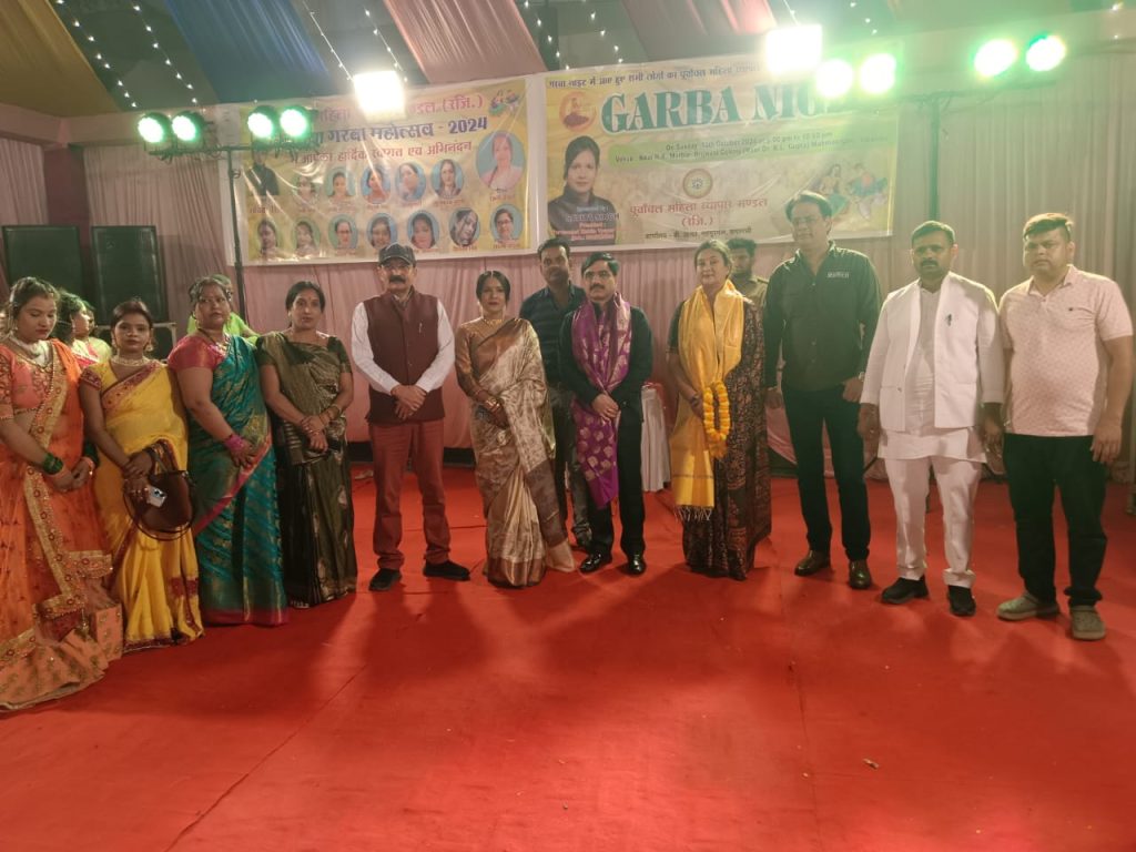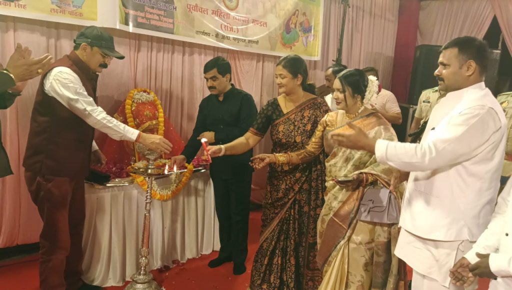 वाराणसी। पूर्वाचल महिला व्यापार मण्डल के तत्वावधान में शारदीय नवरांत्र के अवसर पर भव्य रंगारंग डांडिया नृत्य (गर्बा) सांस्कृतिक कार्यक्रम का आयोजन महमूरगंज स्थित में किया गया। सांस्कृतिक कार्यक्रम सुजीत सिंह “डाक्टर” (पूर्व जिला पंचायत अध्यक्ष, ब्लाक प्रमुख सेवापुरी) के मुख्य आतिथ्य तथा