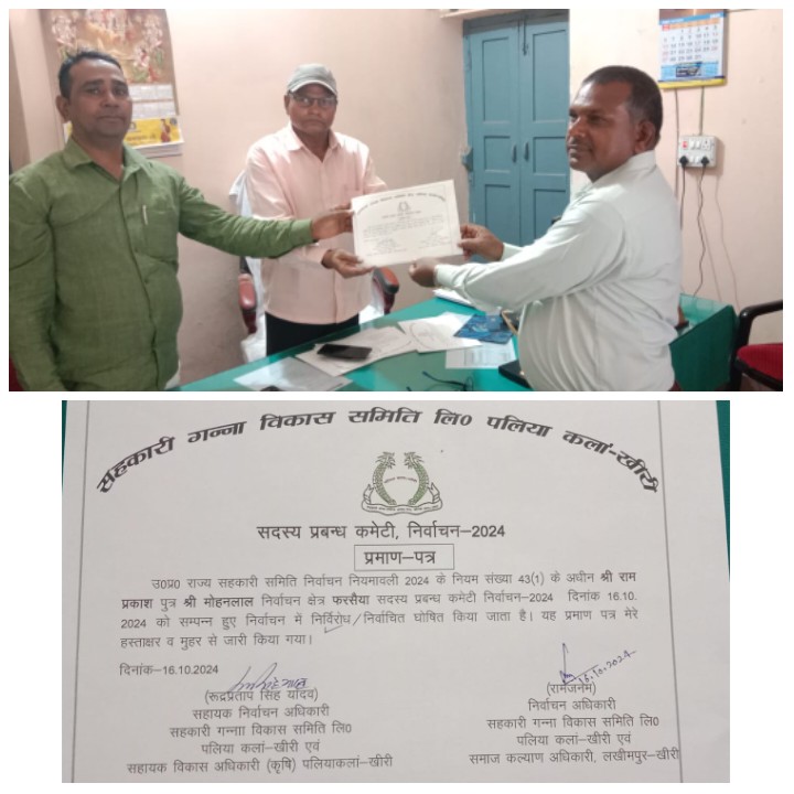 पलिया कलां खीरी। सहकारी गन्ना विकास समिति के डेलीगेट चुनाव के बाद, डायरेक्टर चुनाव की प्रक्रिया 7 अक्टूबर से शुरू हुई और 16 अक्टूबर को चुनाव डायरेक्टर पद चुनाव शांति पूर्वक संपन्न हुए जिसमें सात डायरेक्टर निर्विरोध चुने गए और तीन डायरेक्टर निर्वाचित चुने गए जिसमें पटवारा की सीट पर तेजेंद्र पुत्र बलविंदर सिंह और तेजपाल सिंह पुत्र त्रिलोचन सिंह के बराबर वोट रहे जिसमें आरो निर्वाचन अधिकारी एवं पलिया उप जिलाधिकारी बलिया क्षेत्र अधिकारी के मौजूदगी में लकी ड्रा किया गया और लकी ड्रामा जिसमें तेजेंद्र सिंह पुत्र बलविंदर सिंह की किस्मत प्रबल रही और लकी ड्रा उनके नाम का निकला और विजई हुए। जिसमें ने विरोध डायरेक्टर के नाम निम्न प्रकार हैं, माया देवी पत्नी सरजू प्रसाद अटरिया से निर्विरोध, सलविंदर सिंह पुत्र महेंद्र सिंह गडरिया से निर्विरोध, मनजीत कौर पत्नी अतर सिंह त्रिलोकपुर से निर्विरोध, सुखराज कौर पत्नी जनरल सिंह पटीहन से निर्विरोध, राम प्रकाश पुत्र मोहनलाल फार्सिया से निर्विरोध, अभिषेक अवस्थी पुत्र दुर्गा चरण अवस्थी बलीपुर से निर्विरोध, रवि शंकर मिश्रा पुत्र चंद्रिका प्रसाद मझगई से निर्विरोध। निर्वाचित प्रत्याशी मात्र तीन रहे जिसमें ऐसा प्रतीत होता है कि अपनी डेली बेटों को समझा नहीं पाए और इन्हें वोटिंग प्रक्रिया से गुजरना पड़ा और इस वोटिंग प्रक्रिया में रणजीत सिंह पुत्र मुख्तार सिंह पलिया से विजय हुए, हरपाल सिंह पुत्र दिलबाग सिंह त्रिकोलिया से विजय हुए, तेजेंद्र सिंह पुत्र बलविंदर सिंह पतवारा से लूसी ड्रा से विजेता बने। फिलहाल अब 17 अक्टूबर को चेयरमैन और वाइस चेयरमैन चुने जाएंगे। जिसमें बड़ा चुनावी घमासान होने की संभावना है क्योंकि डायरेक्टर पद पर चयनित प्रत्याशी भी चेयरमैन व वाइस चेयरमैन पर अपनी किस्मत आजमा सकते हैं। शांतिपूर्वक वर्षा कुशल चुनाव संपन्न करने के लिए उप जिलाधिकारी कार्तिकेय सिंह पलिया तथा क्षेत्र अधिकारी यादवेंद्र यादव एवं निघासन थाना पलिया थाना तथा तमाम पुलिस बल की मौजूदगी में चुनाव का शांतिपूर्वक समापन हुआ।