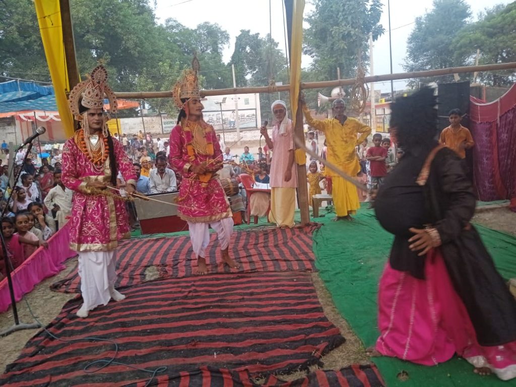 गोला तहसील क्षेत्र के अजान कस्बे मे चल रही ऐतिहासिक रामलीला में तीसरे दिन गुरुवार को मुनि आगमन, ताड़का वध गंगा अवतरण की लीला का मंचन किया गया। कलाकारों का अभिनय मंचन देख दर्शक भाव-विभोर हो गए।महर्षि विश्वामित्र चक्रवर्ती नरेश राजा दशरथ से यज्ञ की रक्षा के लिए राम और लक्ष्मण को मांगने उनके महल पहुंचे। महर्षि ने राजा दशरथ से कहा कि राजन ताड़का नाम की राक्षसी से पूरा समाज भयभीत है। वह जप तप यज्ञ इत्यादि नहीं करने देती है। इसलिए यज्ञ की रक्षा के लिए राम और लक्ष्मण को लेने आया हूं। यह सुनते ही राजा दशरथ दुखी हो गए और कहा कि मुनिवर मेरे राम व लक्ष्मण बहुत कोमल व सुकुमार हैं, भला ताड़का जैसी राक्षसी का कैसे वध करेंगे? ऋषिवर मैं स्वयं आपके यज्ञ की रक्षा के लिए चलूंगा, लेकिन राम व लक्ष्मण को नहीं जाने दूंगा। राजा दशरथ की बात सुन महर्षि विश्वामित्र क्रोधित हो गए और बोले कि मैं तुम्हारी अयोध्या नगरी को भस्म कर दूंगा। उसी समय वशिष्ठ मुनि आते हैं और विश्वामित्र को शांत कराते हुए राजा दशरथ को समझाते हैं कि राम लोक कल्याण के लिए अवतरित हुए हैं। इसलिए इनको महर्षि विश्वामित्र के साथ जाने दीजिए। राजा दशरथ राम व लक्ष्मण को विश्वामित्र के साथ विदा करते हैं। भगवान राम रास्ते मे ही ताड़का नाम की राक्षसी का वध करते हैं। ताड़का का वध करते ही रामलीला प्रांगण जय श्रीराम के नारे से गुंजायमान हो उठा।इसके बाद गंगा अवतार की लीला का मंचन हुआ। इस मौके पर मेला कमेटी अध्यक्ष मिटठन लाल शर्मा,ग्राम प्रधान विपिन कुमार यादव, रणजीत यादव, महेश वर्मा, नवनीत यादव,नसीम अली, सलीम,तरूण बोक्सा,इमाम अली, इन्शाद अली हरिओम यादव, विनीत यादव, जीवन लाल, मुनेश यादव, विमल,, इबरार अली, सतीश यादव, रामशकर,साजिश अली, श्याम किशोर, शकील अली, इरफान, शेर मोहम्मद, नसीर अली, विनोद प्रजापति, ओम प्रकाश वर्मा, मुनेन्द्र शर्मा,राम सेवक, जितेंद्र श्री वास्तव,श्री क्रष्ण शर्मा, रवि कान्त यादव,सही तमाम क्षेत्र वासी व ग्राम वासी मौजूद रहे