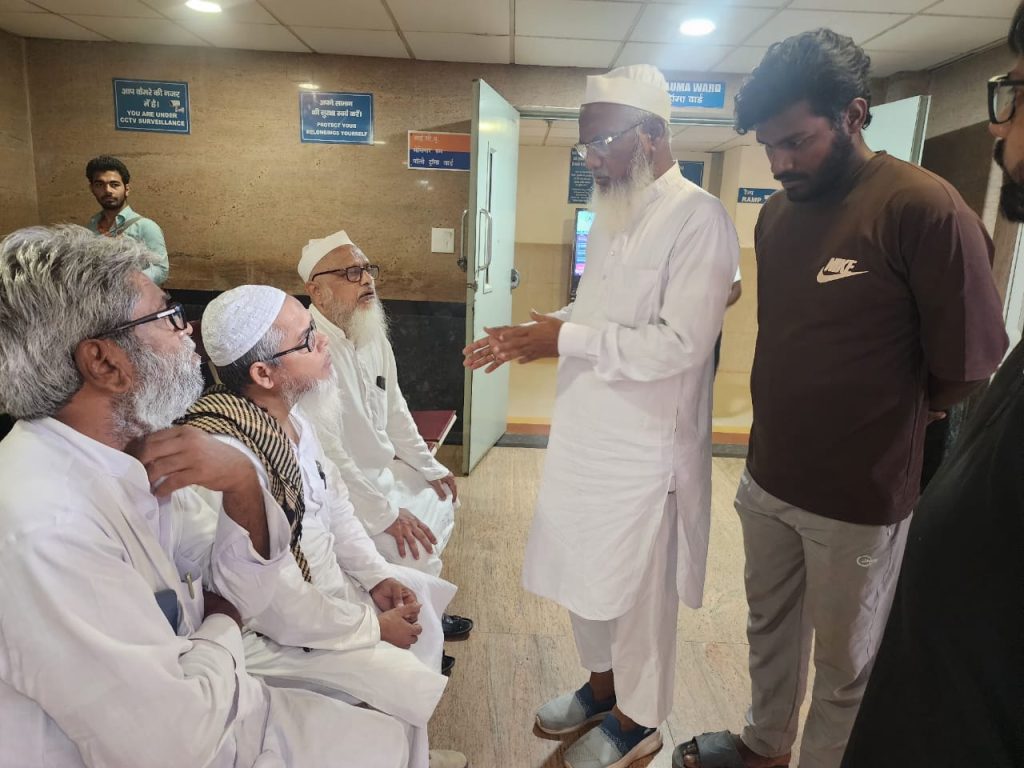 मुफ्ती ए शहर जनाब अब्दुल बातिन नोमानी साहेब , प्रबंधन मज़हरुल उलूम और मुत्ताहिदा उलेमा काउंसिल के प्रतिनिधि मंडल ने आज रेवड़ी तालाब में हुए हादसे में घायल अंसार भाई की हाल चाल ट्रामा सेंटर bhu में जाकर ली।उनके घर वालों को हौसला दिलाया और थाना अध्यक्ष लंका से भी मुलाकात करके करवाई से संबंधित बात की