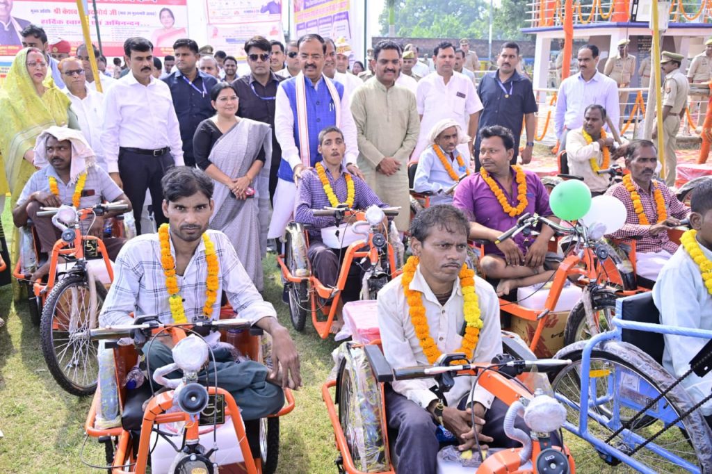 उत्तर प्रदेश उप मुख्यमंत्री श्री केशव प्रसाद मोर्या जी व पूर्व विधायक स्व श्री उपेन्द्र तिवारी जी की पुण्यस्मृति के अवसर पर अपने शाहाबाद (जनपद हरदोई) आगमन के दौरान सोमवार को उप मुख्यमंत्री श्री केशव प्रसाद मौर्या ने बड़ा मैदान में विभिन्न विभागों द्वारा लगायी गयी प्रदर्शनी का अवलोकन किया। उनके द्वारा दिव्यांगों को ट्राईसाईकिल वितरित की गयी।