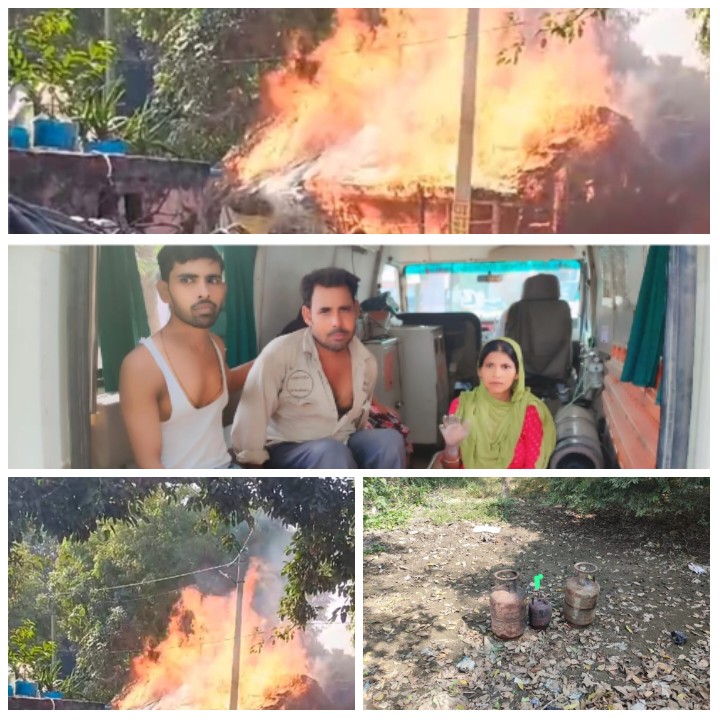 बाराबंकी। सफदरगंज थाना क्षेत्र के ग्राम करमुल्लापुर मजरे दादरा मे गुरुवार की सुबह गैस सिलेंडर से संदिग्ध परिस्थितियों मे लगी आग से एक छप्परनुमा मकान जल कर खाक हो गया आग बुझाते समय दम्पति सहित चार बच्चे आंशिक रूप से झूलस गये जिन्हे सीएचसी बड़ागांव मे भर्ती कराया जहां से जिला अस्पताल रेफर किया गया है।गुरुवार की सुबह सफदरगंज थाना क्षेत्र के ग्राम करमुल्लापुर मजरे दादरा मे उस समय अफरातफरी मच गयी जब गांव के शमशुद्दीन उर्फ़ अन्ना पुत्र मुनीर अहमद के छप्परनुमा मकान एकाएक आग का गोला बन गया आग की बढ़ती लपटो को देख भयभीत ग्रामीणों ने डायल 112 सहित अग्निशमन विभाग को सूचना दी ग्रामीणों के अथक प्रयास के बाद भी आग काबू न होने पर तहसील रामसनेही घाट एव नवाबगंज की पहुंची दमकल की गाड़ियों द्वारा आग को बुझाया गया इस दौरान शमशुद्दीन के घर की समस्त ग्रह गृहस्थी जलकर राख हो गयी। आग बुझाने के दौरान शमशुद्दीन की पत्नी की पत्नी 40 वर्षीय फ़रीदा व शमशुद्दीन गंभीर रूप से झूलस गये वही आग की चपेट मे आने से 12 वर्षीय आफ़ताब आलम, 7 वर्षीय आलिया बानो 5 वर्षीय जुड़वा नूर आलम, महताब आलम भी आंशिक रूप झूलस गये सभी घायलों को सीएचसी बड़ागांव लाया गया जहां से फ़रीदा व शमशुद्दीन को जिला अस्पताल रेफर किया गया है। आग की लपटे डर गये ग्रामीण गुरुवार को करमुल्लापुर निवासी शमशुद्दीन पुत्र मुनीर के घर से उठती लपटो को देख सभी ग्रामीण डर गये आग कैसे लगी जिसको लेकर भी कानाफुंसी हो रही है घायल दम्पति के मुताबिक फ़रीदा सुबह खाना बना रही थी गैस सिलेंडर का पाईप फट जाने से आग लग गयी वही कुछ लोग दबी जुबान से कह रहे थे कि शमशुद्दीन घरेलू गैस सिलेंडर के रिफलिंग का काम करता था जो दादरा गैस एजेंसी से सिलेंडर लाकर छोटे सिलंडरो मे रिफलिंग करता था। बहरहाल दुर्घटना मे घायल दम्पति का जिला अस्पताल मे इलाज चल रहा है।