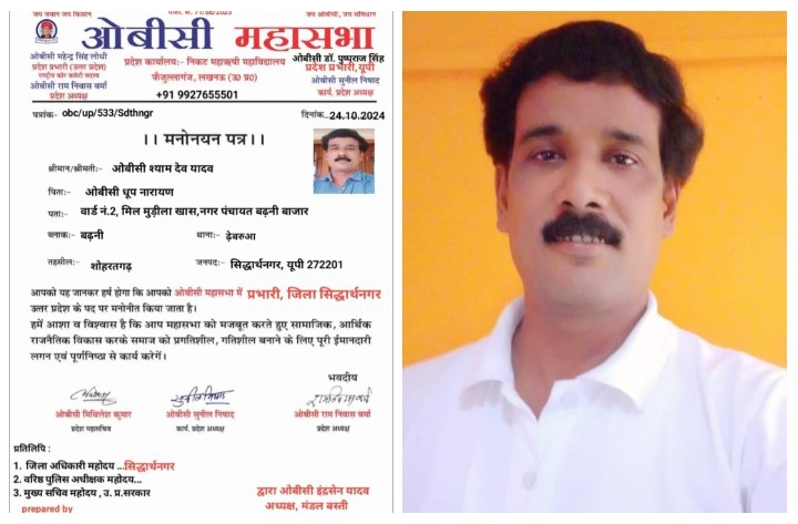 श्यामदेव यादव ओबीसी महासभा के जिला प्रभारी हुए मनोनीत, लोगों ने दी बधाई