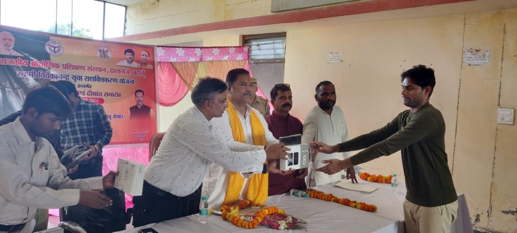दातागंज विधायक राजीव कुमार सिंह उर्फ बब्बू भईया ने इस अवसर पर कुल 175 प्रशिक्षार्थियों को टैबलेट वितरित किए गए एवं दीक्षांत समारोह में वर्ष 2024 के उच्च स्थान प्राप्त करने वाले प्रशिक्षार्थियों को प्रशस्ति पत्र देकर सम्मानित किया गया। इस अवसर पर विधायक राजीव कुमार सिंह ने अपने सम्बोधन में उत्तीर्ण छात्र-छात्राओं के उज्ज्वल भविष्य की कामना करते हुए उन्हें भविष्य में अपने व्यवसाय में आगे बढ़ने के लिए सकारात्मक सोच व अपने कार्यों के प्रति पूर्ण निष्ठा व लगन से कार्य करने की प्रेरणा दी।