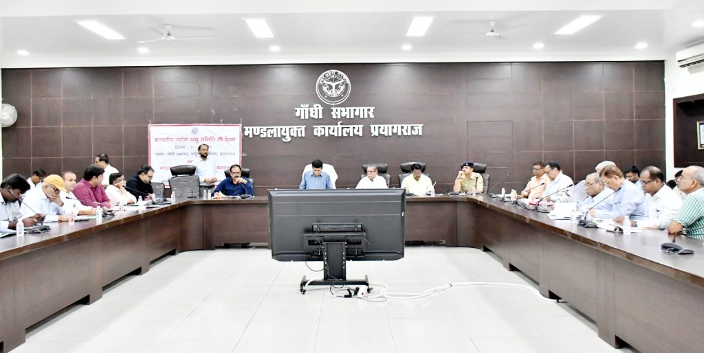 मण्डलायुक्तव विजय विश्वास पंत की अध्यक्षता में शनिवार को गॉधी सभागार में मण्डलीय उद्योग बंधु समिति की बैठक सम्पन्न हुई। बैठक में निवेश मित्र पोर्टल पर प्राप्त प्रकरणों की समीक्षा में जनपद प्रयागराज के लोक निर्माण विभाग से सम्बन्धित 06 प्रकरणों (रोड कटिंग) के निस्तारण हेतु मण्डलायुक्त महोदय द्वारा निर्देश दिये गये कि अपर जिलाधिकारी नगर से सम्पर्क कर शीघ्रातिशीघ्र निस्तारण कराये जाए। ऋणपरक योजनाएँ यथा- प्रधानमंत्री रोजगार सृजन कार्यक्रम /मुख्यमंत्री युवा स्वरोजगार कार्यक्रम/एक जनपद एक योजना की समीक्षा में मण्डल की प्रगति की सराहना की गयी।