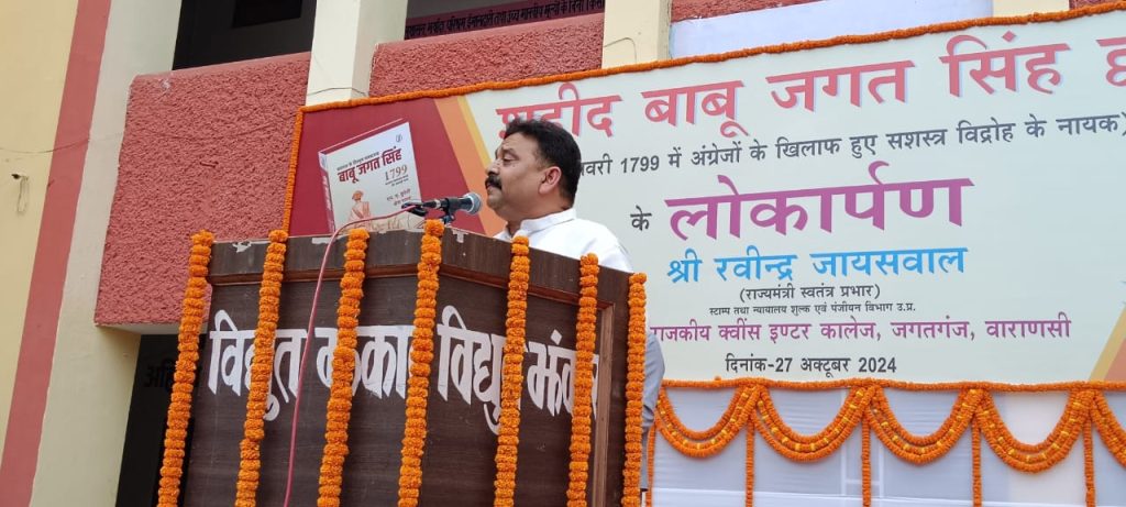 वाराणसी, 27 अक्टूबर। अंग्रेजी हुकूमत के खिलाफ वर्ष 1799 में विद्रोह का बिगुल फूँकने वाले महानायक शहीद बाबू जगत सिंह की स्मृति में रविवार को जगतगंज में शहीद बाबू जगत सिंह द्वार का लोकार्पण हुआ। लहुराबीर जगतगंज मुख्य मार्ग पर राजकीय क्वींस इंटर कॉलेज के ठीक सामने लोक निर्माण विभाग, उत्तर प्रदेश सरकार द्वारा निर्मित द्वार का लोकार्पण प्रदेश के स्टाम्प एवं पंजीयन राज्यमंत्री (स्वतंत्र प्रभार) रवींद्र जायसवाल ने भव्य समारोह में किया