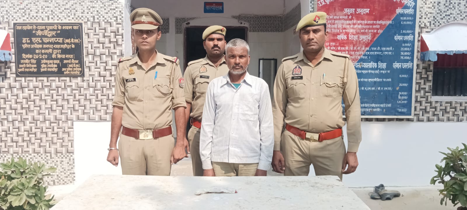 शाहजहांपुर। पुलिस अधीक्षक शाहजहांपुर के निर्देशानुसार में अपराध की रोकथाम व अवैध शराब एंव अवैध शस्त्र, मादक पदार्थ का कारोबार करने वाले क्रियाशील एंव चिन्हित किये गये अपराधियों, वाछित एंव वारंटी अभियुक्त की गिरफ्तारी एंव अपराध की रोकथाम के परिपेक्ष्य मे प्रचलित अभियान के क्रम मे श्रीमान अपर पुलिस अधीक्षक नगर के निर्देशन व श्रीमान क्षेत्राधिकारी नगर के पर्यवेक्षण व प्रभारी निरीक्षक थाना कोतवाली के नेतृत्व में थाना कोतवाली पुलिस की टीम द्वारा दिनांक 29.10.2024 को थाना कोतवाली क्षेत्र में मु0अ0सं0 535/24 धारा 319(2), 318(4), 338, 336(3), 340(2), 61(2) BNS व धारा 3/25 आर्म्स एक्ट थाना कोतवाली जनपद शाहजहांपुर के वांछित अभियुक्त रीतेश प्रताप सिंह पुत्र रामलाल निवासी मोहल्ला बिजलीपुरा थाना कोतवाली जनपद शाहजहांपुर उम्र करीब 25 वर्ष को मुखबिर की सूचना पर नये गर्रा पुल के पास बन रहे निर्माणाधीन नगर निगम कार्यालय के पास की सडक पर से दिनांक 29.10.2024 को समय 02.12 बजे पर मय 06 अदद पासबुक (भिन्न भिन्न बैंको के), 03 अदद एटीएम कार्ड (भिन्न भिन्न बैंको के), 01 अदद मूल पैन कार्ड, 03 अदद पैक कार्ड की छायाप्रति, 07 अदद खाता खोलने के ब्लैक फार्म (भिन्न भिन्न बैंको के) कुल 47 वर्क, 01 अदद लेमिनेटिड आधार कार्ड व 05 अदद आधार कार्ड की छायाप्रति, एक मूल आधार कार्ड , एक वोटर आई डी कार्ड, एक जियो सिम पाऊच, एक बैक कैनरा का भरा फार्म कुल 08 वर्क, एक एटीएम लिफाफा, एक पैन कार्ड की लिफाफा, व जामातलाशी से प्राप्त कुल 340 रुपये व एक अदद मोबाईल की पैड व एक अदद बैग सफेद कपडे में व एक अदद पैन ड्राईव के गिरफ्तार किया गया । गिरफ्तारी/बरामदगी के आधार पर आवश्यक विधिक कार्यवाही की जा रही है ।