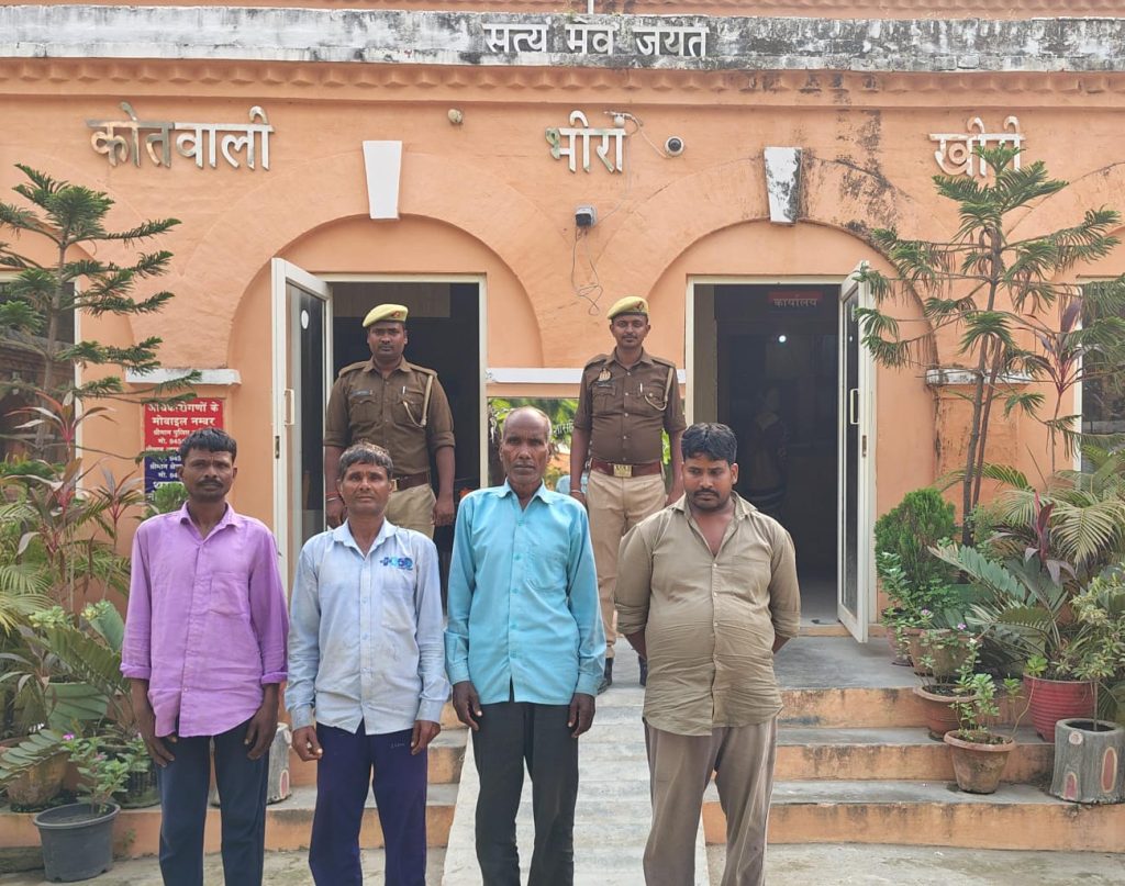 बिजुआ खीरी। पुलिस अधीक्षक खीरी गणेश प्रसाद साहा के निर्देशन व अपर पुलिस अधीक्षक खीरी के निकट पर्यवेक्षण में सम्पूर्ण जनपद में अपराध की रोकथाम व वांछित/वारंटी अभियुक्तों की गिरफ्तारी हेतु चलाए जा रहे अभियान के अंतर्गत आज दिनाकं 04.11.2024 को थाना भीरा पुलिस द्वारा 04 नफर वारण्टी अभियुक्तों 1. प्रमोद कुमार पुत्र परसादी उम्र करीब 42 वर्ष नि0ग्राम बिजुआ थाना भीरा जनपद खीरी अ0सं0- 134A/17 मु0सं0- 20/20 धारा 323/324/504 भादवि 2. सम्बारी पुत्र रूपन उम्र करीब 45 वर्ष नि0ग्राम बिजुआ थाना भीरा जनपद खीरी अ0सं0 137A/17 मु0सं0– 20/20 धारा 323/324/504 भादवि 3. पतिराखन पुत्र नत्थू उम्र करीब 62 वर्ष नि0ग्राम बिजुआ थाना भीरा जनपद खीरी मु0सं0– 6472/16 धारा 26/41/42 F Act 4. पलविन्दर पुत्र सोहनलाल उम्र करीब 35 वर्ष नि0ग्राम बिजुआ थाना भीरा जनपद खीरी मु0सं0- 647216 धारा 26/41/42 F Act को बहृदग्राम बिजुआ से गिरफ्तार किया गया तथा गिरफ्तार शुदा अभियुक्तगण उपरोक्त को माननीय न्यायालय के समक्ष पेश करने हेतु लखीमपुर खीरी भेजा जा रहा है ।