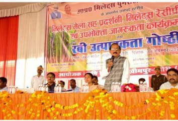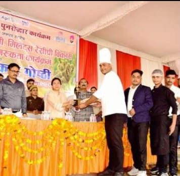 08 नवंबर। शहर के वंदन गार्डन में शुक्रवार को उप्र मिलेट्स पुनरोद्धार कार्यक्रम के तहत “जनपदीय मिलेट्स मेला सह प्रदर्शनी, मिलेट्स रेसीपी विकास एवं उपभोक्ता जागरूकता कार्यक्रम और रबी उत्पादकता गोष्ठी” कार्यक्रम हुआ। इस भव्य कार्यक्रम में एक तरफ जहां श्रीअन्न के पोषक मूल्य खेती-प्रसंस्करण पर चर्चा हुई। वहीं दूसरी तरफ जिले के नामचीन होटल व रेस्तरां सहित आंगनवाड़ी कार्यकत्रियों, स्वयं सहायता समूह एफपीओ एवं महाविद्यालय के विद्यार्थियों ने भी मिलेट्स व्यंजनों की कुकिंग प्रतियोगिता में हिस्सा लिया। कार्यक्रम का सफल संयोजन उप कृषि निदेशक अरविंद मोहन मिश्रा ने किया।शुक्रवार को कृषि महकमे के तत्वावधान में आयोजित कार्यक्रम का शुभारंभ डीएम दुर्गा शक्ति नागपाल और विधायक धौरहरा विनोद शंकर अवस्थी ने पीडी एसएन चौरसिया,डीडी (कृषि) अरविंद मोहन मिश्रा की मौजूदगी में दीप जलाकर किया। इससे पूर्व डीएम ने अफसरो के साथ कृषि, गन्ना, उद्यान, पशुपालन इफको, कृभको, बैंक, पीएम सूर्य घर शाहिद विभिन्न विभागों के स्थान का अवलोकन किया। उन्होंने श्री अन्न रेसिपी स्टालों का भी अवलोकन कर श्रीअन्न से तैयार रेसिपी की जानकारी ली एवं उनका मनोबल बढ़ाया।कार्यक्रम में डीएम दुर्गा शक्ति नागपाल, विधायक धौरहरा विनोद शंकर अवस्थी ने अफसरों संग श्री अन्न व्यक्तिगत भोज्य पदार्थ, होटल/रेस्टोरेंट/कैटर्स भोज्य पदार्थ, समूह भोज्य पदार्थ, एफपीओ भोज्य पदार्थ और महाविद्यालय भोज्य पदार्थ के स्तर पर हुई प्रतियोगिताओं में अपनी रेसिपी के अनुसार प्रथम, द्वितीय और तृतीय स्थान प्राप्त करने वाले विजेताओं को पुरस्कृत किया। वही इंटरमीडिएट एवं स्नातक स्तर पर हुई श्री अन्न प्रश्नोत्तरी प्रतियोगिता में विजेताओं को पुरस्कृत कर सम्मानित किया। रेसिपी प्रतियोगिता में निर्णायक की भूमिका में पीडी डीआरडीए एस एन चौरसिया की अध्यक्षता में वाईडी कॉलेज की डॉ ज्योति पंत, रॉयल प्रूडेंस कॉलेज डा० अंशू वर्मा,कृषि वैज्ञानिक डॉ सुहैल, खाद्य सुरक्षा अधिकारी ने निभाई।*विधायक ने किया आवाह्नन, श्री अन्न उत्पादन के लिए आगे आए किसान*विधायक धौरहरा विनोद शंकर अवस्थी ने कहा कि भारत ने योगा, आयुर्वेद एवं मिलेट्स (श्री अन्न) से पूरे विश्व को परिचित कराया। दुनिया आज इसे हाथों हाथ ले रही है। पीएम ने मिलेट्स, मोटा अनाज को श्री अन्न कहकर प्रतिष्ठा दी है। मिलेट्स के प्रयोग से जहां हम बीमारियों से बच सकते हैं। वही इससे प्रतिरोधक क्षमता में भी वृद्धि होती है। यह स्वादिष्ट होने के साथ ही स्वास्थ्यवर्धक है। उन्होंने मौजूद किसानों से श्री अन्न उत्पादन के लिए आगे आने का आवाह्नन करते हुए मिलेट्स को आज की आवश्यकता बताई।*श्री अन्न किसानों के लिए सम