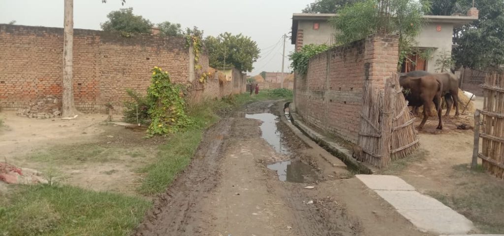 खैरहनी गांव के लोग पानी व कीचड़ में निकलने को मजबूर
