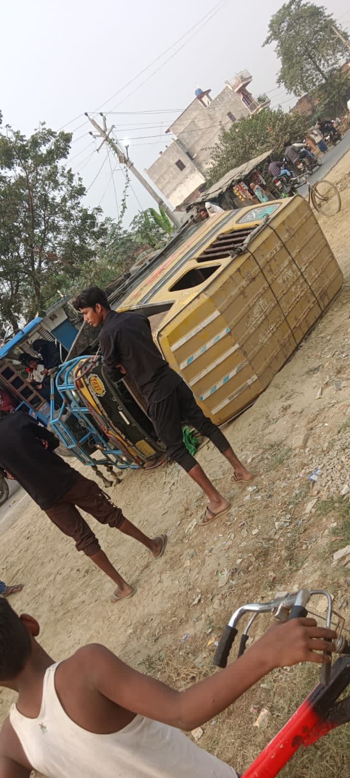 टेम्पो असंतुलित होकर पलटा कई लोग घायल एम्बुलेंस से इलाज हेतु ले जाया गया अस्पताल