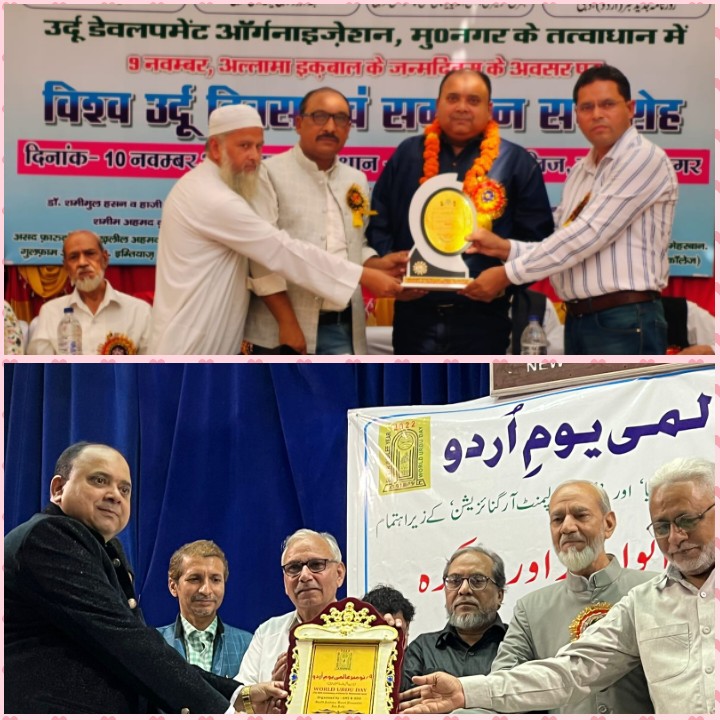 9 नवंबर 2024 /10 नवंबर आज विश्व उर्दू दिवस के उपलक्ष में उर्दू विभाग दिल्ली विश्वविद्यालय में कार्यरत सहायक प्रोफेसर डाक्टर अली अहमद इदरीसी को शिक्षा छेत्र में उनके उत्कृष्ट योगदान के लिए अल्लामा इक़बाल अंतर्राष्ट्रीय अवार्ड से सम्मानित किया गया यह अवार्ड विश्व उर्दू दिवस कमेटी दिल्ली ने प्रदान किया तत्पश्चात 10 नवंबर 2024 को उर्दू डेवलपमेंट आर्गेनाइजेशन मुज़फ्फरनगर ने मौलाना अबुल कलाम आज़ाद शैक्षिक अवार्ड प्रदान किया डाक्टर इदरीसी पिछले दिल्ली विश्वविद्यालय में चौदह वर्षो से कार्यरत हैँ इनके बहुत से शोध पत्र राष्ट्रीय और अंतरराष्ट्रीय पत्रिकाओं में प्रकाशित हो चुके हैँ साथ ही साथ डाक्टर इदरीसी कई अंतर्राष्ट्रीय शोध पत्रिकाओं के सलाहकार समिति के सदस्य भी हैँ डाक्टर इदरीसी सिद्धार्थनगर के ग्राम करोंदlमसीना निवासी सवार्गीय ग़ुलाम हुसैन के पुत्र हैँ इनकी आरंभिक शिक्षा दीक्षा जय किसान इंटर कॉलेज सनई, शिवपाती इंटर कॉलेज शोहरतगढ़ और रतन सेन डिग्री कॉलेज बंlसी से हुई है तत्पश्चात इन्होने उच्च शिक्षा दिल्ली विश्वाविदालाया से पूर्ण की और वही कार्यरत हैँ डाक्टर इदरीसी को उनके महत्वपूर्ण सफलता के लिए परिवार जनो और समस्त मित्रो की ओर से ढेर सारी बधाईया और शुभकामनायें.