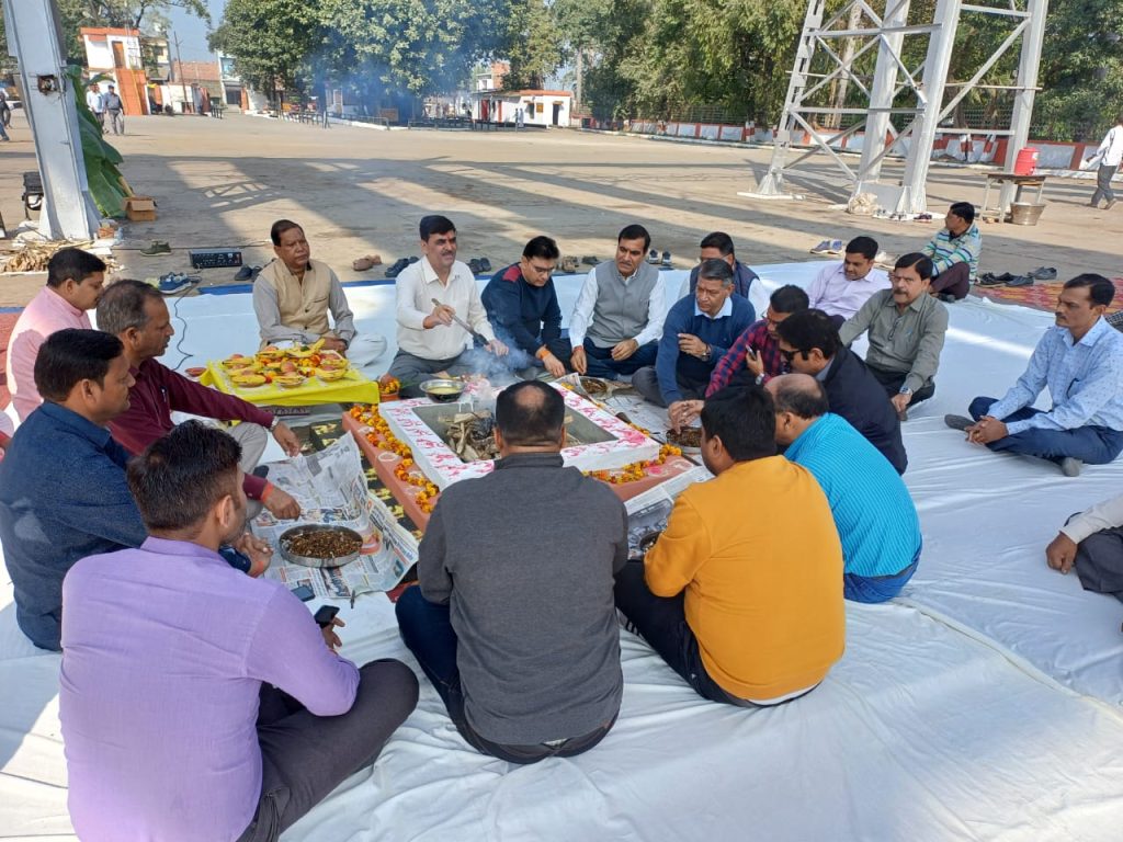 पुजारी रामेंद्र मिश्र ने आज विधिवत हवन पूजन यूनिट हेड ओ पी चौहान द्वारा कराया गया