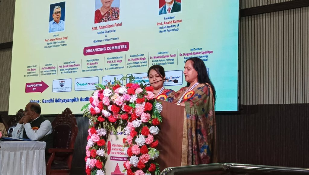 वाराणसी कुलपति आनंद कुमार त्यागी महात्मा गांधी काशी विद्यापीठ की अध्यक्षता में इंडियन अकादमी ऑफ हेल्थ psychological संयुक्त तत्वाधान में दिनांक 22 नवंबर से 24 नवंबर तक अंतरराष्ट्रीय सम्मेलन का आयोजन किया गया। जिसमे मुख्य अतिथि जूली गारलैंड रही। इस सम्मेलन की गेस्ट ऑफ ऑनर मंजू ठाकुर रही