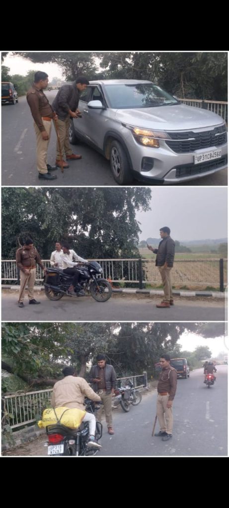 सड़क सुरक्षा को लेकर थाना मैगलगंज क्षेत्र फत्तेपुर चौकी प्रभारी सुशील तिवारी व कंस्टेबल विपिन कुमार, बलकरन के नेतृत्व में दो पहिया व चार पहिया वाहन की सघन चेकिंग अभियान चलाया गया। जिसमें बिना हेलमेट व सीटबेल्ट लगाकर वाहन चलाने वाले लोगों का ई चालान किया व लोगों को हिदायत दी कि हेलमेट व सीट बेल्ट लगाकर वाहन पर चलें।
