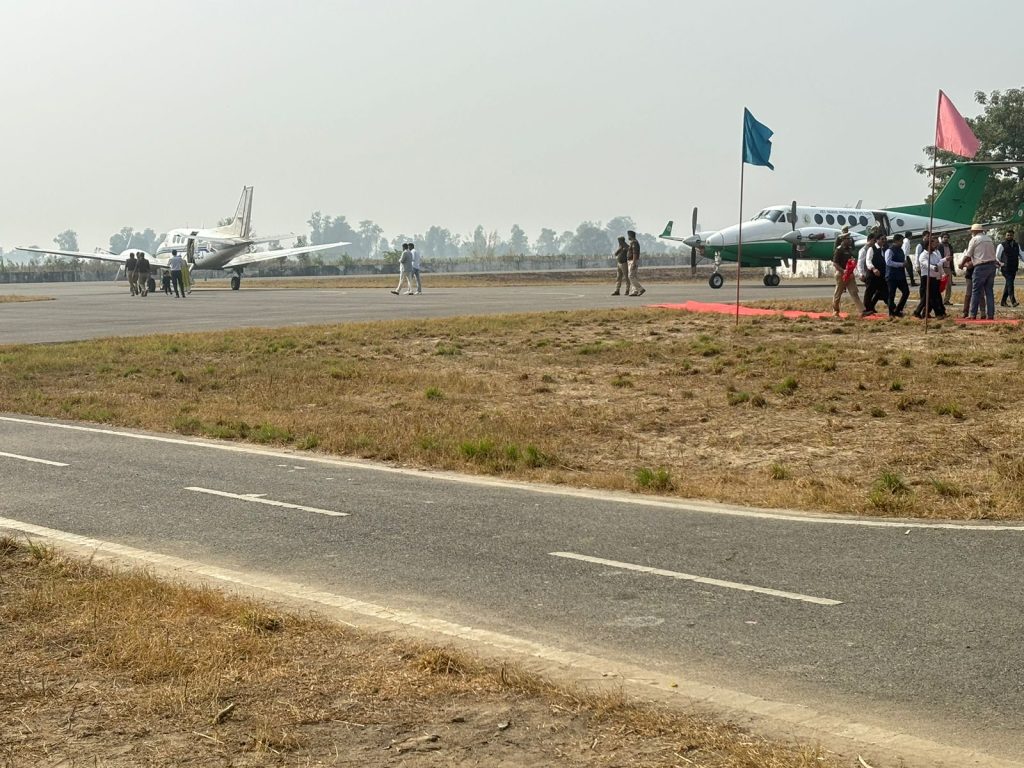 पलिया में एयरपोर्ट सेवा शुरू पहला हवाई जहाज पलिया एयरपोर्ट पर उतरा एयरपोर्ट पर हवाई जहाज उतरते ही क्षेत्र में खुशी का माहौल जिला व क्षेत वासियों को जिस का बेसब्री से इंतजार था आज वह ऐतिहासिक दिन आ गया और पलिया एयरपोर्ट का विधिवत शुभारंभ उत्तर प्रदेश के कैबिनेट मंत्री जयवीर सिंह जी व वन मंत्री श्री अरुण सक्सेना जी के द्वारा किया गया! आज पलिया एयरपोर्ट पर पहला विमान उतरा पलिया शहर के कई सम्मानित सम्मानित व्यक्ति मौजूद रहे और पहला हवाई जहाज पलिया एयरपोर्ट पर उतारने वाले पायलटों का माल्यार्पण कर स्वागत एवं सम्मान किया! साथ ही पलिया की जनता को मंगल कामनाएं दी! व मुख्य अतिथि कैबिनेट मंत्री श्री जयवीर सिंह जी को बधाई देते हुए विधायक रोमी साहनी जी धन्यवाद व्यक्त किया विधानसभा पलिया में एयरपोर्ट कार्य जल्द से जल्द पूरा कराया और पब्लिक को जल्द से जल्द एरोप्लेन की सुविधा दिलाने का कार्य किया इससे जिला व क्षेत्र की जनता में खुशी का माहौल है और सरकार का धन्यवाद व्यक्त किया पलिया नगर व क्षेत्र वासियों की ओर से आभार व्यक्त किया!