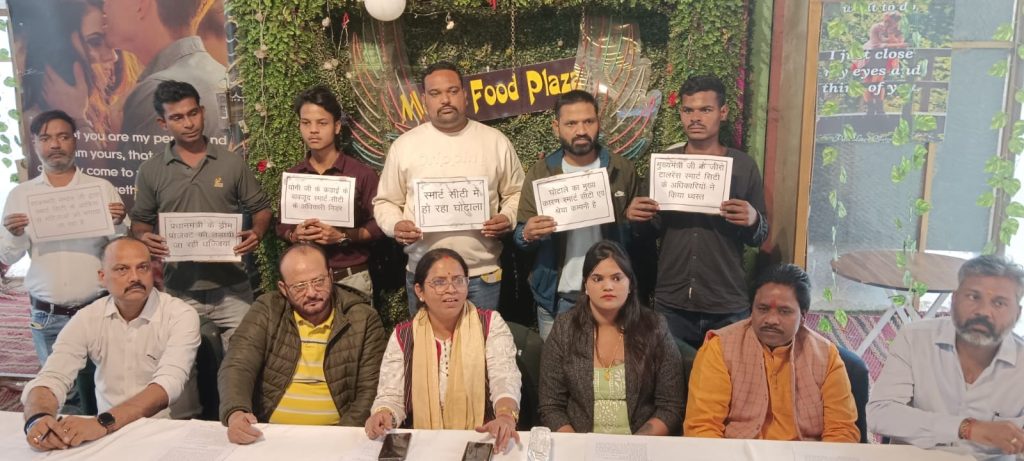 वाराणसी आज स्मार्ट सिटी व्यापार मण्डल सम्बन्ध व्यापार मण्डल वाराणसी द्वारा पत्रकार वार्ता में स्मार्ट सिटी व्यापार मण्डल अध्यक्ष मो० अजमी महामंत्री रीतु राय एव समस्त पदाधिकारी व अन्य प्रताड़ित व्यापारियों ने बताया कि नाइट मार्केट के ठेकेदार श्रेया कम्पनी के मालिक अंजनी पाण्डेय एवं स्मार्ट सिटी के कुछ अधिकारियों की मिलीभगत से नाईट मार्केट के किरायेदारों से अवैध ढंग से मनमानी किराया एवं सिक्योरिटी मनी के नाम पर वसूली की जा रही है जिसका विरोध करने पर व्यापारियों को दुकान खाली करने की धमकी दी जा रही है प्रधानमंत्री जी के संसदीय क्षेत्र में उनकी इच्छा के विरुद्ध कार्य किया जा रहा है एवं मुख्यमंत्री के जीरो टालरेंस को स्मार्ट के अधिकारी एवं श्रेया कम्पनी द्वारा धमकी दी जा रही है। ऐसे भ्रष्ट अधिकारी श्रेया कम्पनी के ठेकेदार अंजनी पाण्डेय का पर्दाफाश होना चाहिए जो कि व्यापारियों के साथ-साथ राजस्व की भी नुकसान कर रहे हैं। स्मार्ट सिटी के अधिकारियों के मिलीभगत से सिक्योरिटी मनी का नियम ना होने के बावजूद नाईट मार्केट से सभी व्यापारियों जिनमें से छोटे व बड़े व्यापारियों को मिला कर लाखों की वसूली की जा रही है ठेले वालों से सिक्योरिटी मनी के नाम पर 38 हजार से 50 हजार तक धन वसूला जा रहा है।