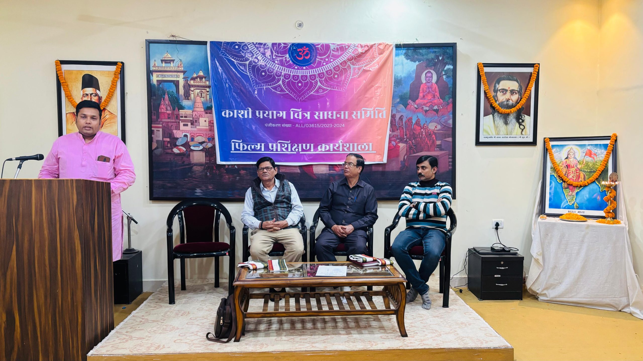 काशी, आज काशी-प्रयाग चित्र साधना द्वारा आयोजित एवं बनारस यूथ थियेटर, रंग प्रयोग नाट्य संस्थानम के सहयोग से विश्व संवाद केंद्र, लंका माधव सभागार में ‘एक दिवसीय फ़िल्म मेकिंग एवं सिनेमेटिक लैंग्वेज’ पर बनारस यूथ थियेटर एवं रंग प्रयोग नाट्य संस्थानम के सहयोग से कार्यशाला का आयोजन हुआ, जिसका उद्घाटन काशी प्रयाग चित्र साधना के सचिव वसु पाठक, उपाध्यक्ष मुरार जी त्रिपाठी मुख्य अतिथि प्रमोद पाठक धन्यवाद ज्ञापन वरिष्ठ रंगकर्मी डॉ. उपेन्द्र विनायक सहस्रबुद्धे ने किया। फ़िल्म संचार का महत्वपूर्व साधन है और इसे किस दृष्टी से बनाया जा रहा है, ये इससे भी महत्वपूर्ण है। क्या हमारे सिनेमा से समाज एवं राष्ट्र की प्रगति में हमने कुछ योगदान किया है? क्या हमने अपनी संस्कृति-संस्कारों को भारतीय की दृष्टि से दिखाया है। इन सभी मुद्दों पर बात हुई ।कार्यशाला में फ़िल्म अभिनय प्रशिक्षक रूप में अमित कुमार श्रीवास्तव ( BNA Alumni ) एवं फ़िल्म मेकिंग एवं सिनेमेटिक लैंग्वेज के प्रशिक्षक के रूप में रजनीश कुमार मिश्र ( सहायक अध्यापक, जनसंचार विभाग, सिस्टर निवेदिता विश्वविद्यालय, कोलकाता ) ने प्रशिक्षण दिया। राजकुमार, विशाल, पुष्कर, अदिति, रोहन, रामचन्द्र, बिनीता, प्रतीक्षा, प्रांजलि, श्रुति, अमन, धर्मेन्द्र ब्रजेश, आयुषी, दीप्ति, सृजन, निकिता, निखिल, आदित्य, प्रवीण, शिवम, मोहित, सौम्या, सिद्धांत, राहुल, सर्वोत्तम, दीक्षा, नीरज एवं श्रेया आदि ने फ़िल्म निर्माण का प्रशिक्षण प्राप्त किया। प्रणाम-पत्र वितरण वसु पाठक, मुरार जी त्रिपाठी ने किया। कार्यशाला का संचालन उत्कर्ष उपेन्द्र सहस्रबुद्धे एवं अर्चना निगम ने किया।