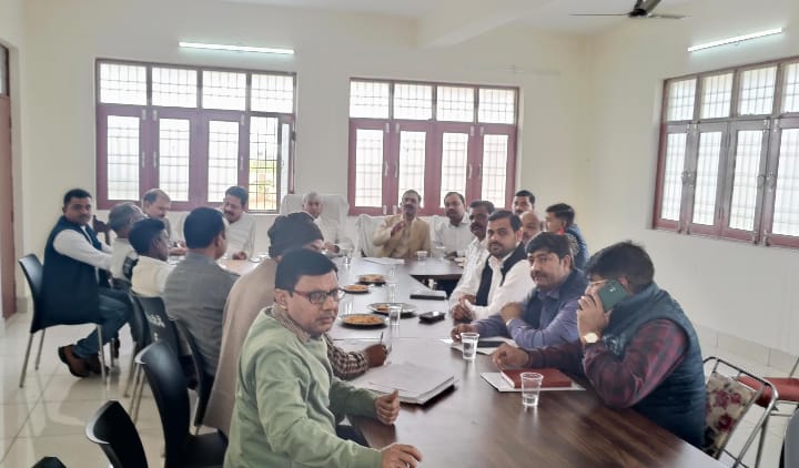 मैगलगंज खीरी। नवनिर्वाचित गन्ना समिति के बोर्ड की पहली बैठक आज गन्ना समिति कार्यालय में संपन्न हुई जिसमें पूर्व राज्यसभा सांसद भाजपा नेता जुगुलकिशोर भी मौजूद रहे। डीसीएम ग्रुप की बैठक में अजबापुर, कुंभी चीनी मिल के अधिकारी भी बैठक में मौजूद रहे।नवनिर्वाचित सहकारी गन्ना समिति मैगलगंज की बोर्ड की पहली बैठक आज पूर्व राज्यसभा सांसद भाजपा नेता जुगुल किशोर की मौजूदगी में संपन्न हुई जिसमें संचालकों ने तमाम समस्याओं को लेकर वार्ता की जिसमें गन्ना क्रय केंद्रों पर किसानों से उतराई न वसूली जाए, गन्ना क्रय केंद्रों की तौल शिफ्ट से न कराकर सुबह 7 बजे से कराई जाए, किसानों का पुराना समिति पर बकाया तत्काल भुगतान कराया जाए, गन्ना क्रय केंद्र के किसानों को पांच कुंतल वजन बढ़ाकर 55 की जगह 60 कुंटल का ग्रास किया जाए, किसानों को मिलने वाली खाद के लिए गोदाम की व्यवस्था परिसर में ही कराई जाए, किसानों की गन्ने की पौध व पेड़ी की अलग-अलग सर्वे कराई जाए, सेंटरों पर गन्ना ढुलाई को लेकर पर्याप्त साधनों की व्यवस्था सुनिश्चित कराई जाए, छोटे किसानों को कम से कम एक गन्ने की पर्ची अवश्य उपलब्ध कराई जाए, तमाम मुद्दों को लेकर संचालकों व चीनी मिल अधिकारियों समेत समिति के सचिव के मध्य वार्ता हुई। जिसमें जल्द ही सभी मुद्दों पर चीनी मिल व सचिव के द्वारा सहमति प्रदान की गई, इस दौरान गन्ना संचालक समिति के अध्यक्ष राजेंद्र मिश्रा व संचालक उषा सिंह के प्रतिनिधि गुड्डन सिंह, चंद्रशेखर वर्मा, अनिल राठौर, अंकित त्रिवेदी, अमित कुमार सिंह, सत्यवान, रामअवतार, सुधीर कुमार, रामराखन पाल के साथ-साथ लगभग सभी संचालक मौजूद रहे। चीनी मिल की तरफ से डीसीएम ग्रुप अजबापुर से गन्ना अधिकारी रमेश चौधरी के साथ-साथ कुम्भी मिल के भी अधिकारी मौके पर मौजूद रहे।