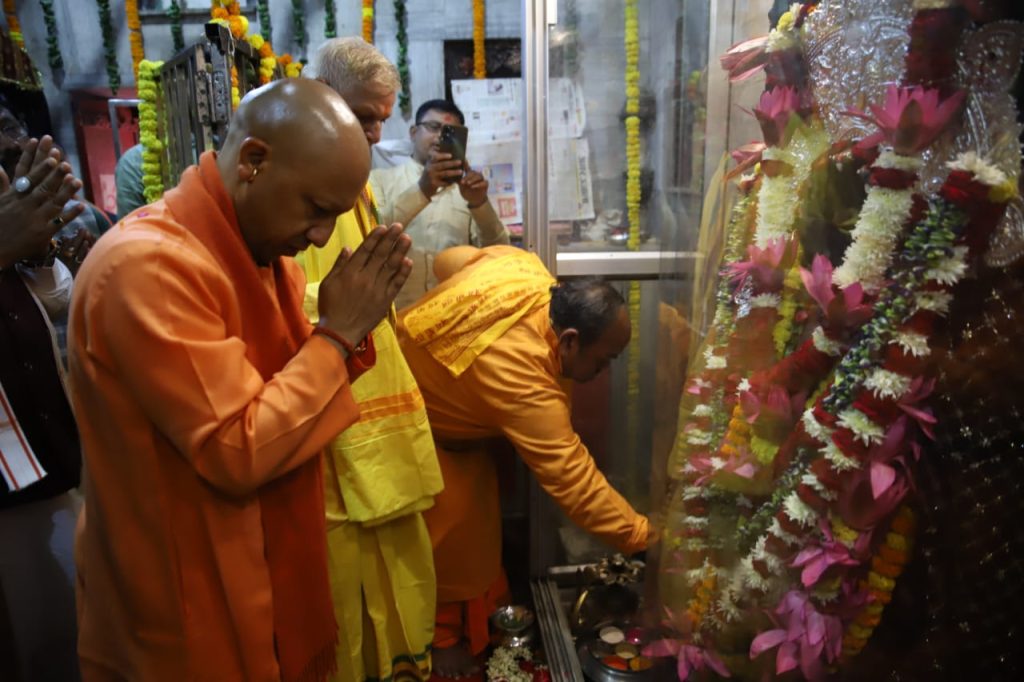 यहां उन्होंने नागवासुकि मंदिर में दर्शन और पूजन किया। यहां सीएम योगी ने नागवासुकि की प्रतिमा को माला पहनाकर उनका आशीर्वाद लिया। इसके बाद सीएम योगी ने गंगा पुत्र भीष्म का भी दर्शन किया। साथ ही पुष्प अर्पित कर आरती भी उतारी। उनके साथ उप मुख्यमंत्री केशव मौर्य, नगर विकास मंत्री एके शर्मा, जलशक्ति मंत्री स्वतंत्र देव सिंह, औद्योगिक विकास मंत्री नंद गोपाल नंदी, समेत अन्य जनप्रतिनिधि एवं मंदिर के पुजारी भी मौजूद थे।