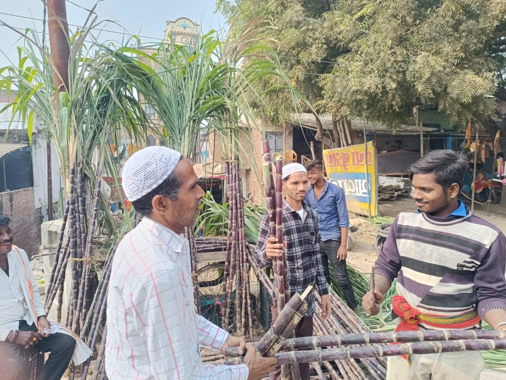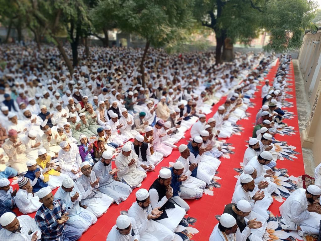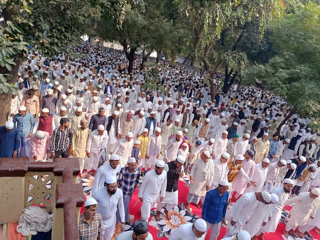 वाराणसी आज दि0 29/11/24 को पुरानापुल पुल्कोहना स्थित ईदगाह में बुनकर बिरादराना तंज़ीम बाईसी के सरदार हाजी हाफिज मोइनुद्दीन उर्फ कल्लू हाफिजी की सदारत में सदियों पुरानी पारंपरिक अगहनी जुमे की नमाज अदा की गयी । इस मौके पर सरदार हाजी हाफिज मोइनुद्दीन उर्फ कल्लू हाफिजी ने बताया की अगहन के इस पवित्र महीने में पूरा बुनकर समाज अगहनी जुमे की नमाज हर साल ईदगाह में अपना अपना कारोबार “मुर्री” बंद कर अदा करता है ये सिलसिला लगभग 460 साल पहले से चली आ रही है उस वक़्त देश के हालात ठीक नहीं थे किसान और बुनकर दोनो समाज के लोग परेशान और बदहाल थे बारिस न होने की वजह से किसान परेशान थे खेती नही हो रही थी देश में अकाल पड़ा था तब बुनकरो के कारोबार नही चल रहें थे तब बुनकर समाज के लोगो ने अपना अपना कारोबार बंद कर ईदगाह में इकठ्ठा हो कर अगहन के महीने में ईदगाह में नमाज़ अदा किया अल्लाह की बारगाह में हाथ फैला कर दुआ की और अल्लाह का करम हुआ और खूब जम कर बारिस हुयी किसानो में खुसी की लहर दौड़ गयी और उसके साथ साथ बुनकरों के कारोबार में भी तेजी आई । तभी से इस परंपरा को बुनकर बिरादराना तंजीम बायीसी निभा रही है । बनारस की दूसरी तंज़ीम बुनकर बिरादराना तनजी बावनी के सद्र हाजी मुख़्तार महतो साहब के लड़के फैसल महतो ने बताया की ये अगहनी जुमा की नमाज़ गंगा जमुनी तहजीब की एक जीता जागता सुबूत है सदियो पहले जब मुल्क के हालात ख़राब थे सभी वर्ग के लोग परेसान और बदहाल थे तब उस बदहाली और परेसानी को दूर करने के लिए बुनकर समाज के लोग अपने अपने मुर्री बंद कर ईदगाह में नमाज़ अदा कर दुआए की और उस दुआ को असर हुआ चारो तरफ खुशाली आई किसान और बुनकर दोनों के कारोबार में बरक्कत हुयी और ये परंपरा आज भी हम सब निभा रहे है । बुनकर बिरादराना तंजीम बारहों के सरदार हासिम अंसारी ने कहा की हमारे बुनकर समाज ने हमेशा गंगा जमुनी तहजीब की मिसाल पेस की है बुनकारी के पेशे में हिंदू भाई और मुस्लिम भाई एक साथ मिल कर काम करते है और अगहनी जुमे में भी यही पैगाम देते है आज के दिन हमारे किसान भाई द्वारा उगाई गयी गन्ने को जिसकी दुकान हमारे हिन्दू भाई लगाते है उन तमाम दुकानो से मुसलमान भाई अगहनी जुमे की नमाज़ अदा कर दुकानों से गन्ना खरीद कर अपने अपने घर ले जाते है यही हमारा हिंदुस्तान की गंगा जमुनी तहजीब है । तक़रीर मौलाना जाहिर साहब ने की । तक़रीर में मौलाना साहब ने सभी से मिल्लत और भाई चारगि बनाने की अपील की और कहा की सभी लोग आपस में मोहब्बत रखिये मोहब्बत एक ऐसी चीज है जो सभी को एक धागे में पिरो कर एक साथ ले कर चलता है आज हम सब को इसी की जरुरत है । आज अगहनी जुमे की नमाज़ मौलाना जहिर साहब ने पढाई और नमाज़ के बाद दुआखानी कर मौलाना साहब ने मुल्की की तरक्की के लिए दुआये की । आपस मे