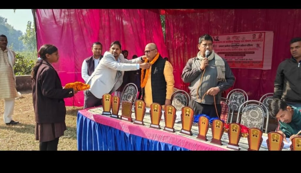 महराजगंज।घुघली ब्लॉक के अंतर्गत ग्राम सभा मंगलपुर पटखौली आयोजित युवा कल्याण एवं प्रादेशिक विकाश दल विभाग महराजगंज द्वारा आयोजित उत्तर प्रदेश ग्रामीण खेल लीग अंतर्गत विकास खण्ड स्तरीय ग्रामीण खेल कूद प्रतियोगिता का उद्घाटन ओमप्रकाश जायसवाल ने फीता काटकर किया उद्घाटन एवं बच्चों को पुरस्कार वितरण कियाइस अवसर पर क्षेत्रीय खेल युवा कल्याण अधिकारी राकेश पटेल बैजनाथ गुप्ता अजय श्रीवास्तव आदि लोग मौजूद थे।