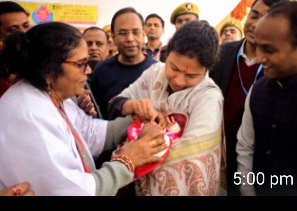लखीमपुर खीरी 08 दिसंबर। जनपद खीरी में पांच वर्ष तक की उम्र के बच्चों को पोलियो से बचाने के लिए रविवार से पल्स पोलियो अभियान शुरू किया गया। एक हफ्ते तक चलने वाले इस अभियान का शुभारंभ डीएम दुर्गा शक्ति नागपाल ने जिला महिला चिकित्सालय से किया। उन्होंने अवसर पर उन्होंने फीता काटकर अभियान की शुरुआत की और नवजात शिशु अंश, अर्श समेत पांच शिशुओं को पोलियो ड्राप भी पिलाया और दो बूंद हर बार, पोलियो पर जीत रहे बरकरार का मंत्र भी दिया।डीएम दुर्गा शक्ति नागपाल ने कहा कि पल्स पोलियो अभियान के तहत लखीमपुर खीरी जिले के लगभग 739082 बच्चों को 0 से 5 साल की आयु के बीच पल्स पोलियो की खुराक दी जाएगी। इस अभियान का उद्देश्य बच्चों को पोलियो जैसी गंभीर बीमारियों से बचाना है। अभियान के दौरान स्वास्थ्य विभाग के अधिकारियों और आंगनबाड़ी कार्यकर्ताओं को भी जिम्मेदारी दी गई है, ताकि वे घर-घर जाकर बच्चों को खुराक पिला सकें और अभियान को सफल बना सकें।उन्होंने बताया कि इस अभियान को 8 दिसंबर से 13 दिसंबर तक चलाया जाएगा और इसका लक्ष्य जिले के सभी बच्चों तक पहुँच कर उन्हें पल्स पोलियो से जोड़ा जाएगा। डीएम ने सभी अधिकारियों को यह निर्देश दिया है कि हर घर तक पहुंचकर बच्चों को पोलियो की खुराक पिलाई जाए, ताकि 100% बच्चों को इस अभियान का लाभ मिले।एसीएमओ डॉ अनिल गुप्ता ने भी अधिकारियों से कहा कि वे अधिक से अधिक लोगों को इस अभियान से जोड़ें और सुनिश्चित करें कि कोई भी बच्चा इस खुराक से वंचित न रहे। जागरूकता अभियान के माध्यम से पूरेजिले में पल्स पोलियो के बारे में लोगों को जानकारी दी जा रही है।शुभारंभ कार्यक्रम के दौरान एसीएमओ डॉ अनिल गुप्ता, डिप्टी सीएमओ डॉ लालजी पासी जिला प्रतिरक्षण अधिकारी डॉ प्रमोद कुमार, एसएमओ विकास सिंह, यूनिसेफ से मुकेश चौहान, डीपीएम अनिल यादव सहित स्वास्थ्य विभाग के अधिकारी कर्मचारी मौजूद रहे।
