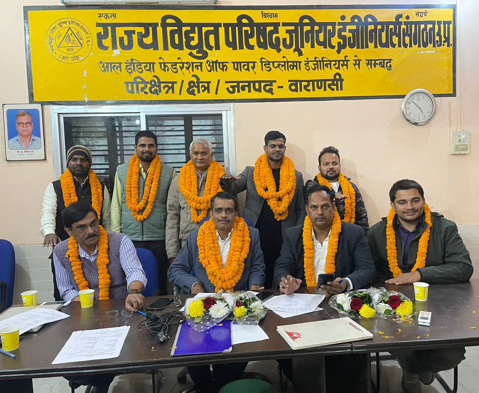 वाराणसी आज दिनांक 08 दिसंबर 2024 दिन रविवार को राज्य विद्युत परिषद जूनियर इंजीनियर्स संगठन के प्रेषण दक्षिण पूर्व का वार्षिक सत्र 2024-25 का चुनाव संगठन के केशव सदन में संपन्न हुआ। चुनाव कार्यक्रम केंद्र से नामित निर्वाचन अधिकारी इं इंद्रेश चौधरी एवं सहनिर्वाचन अधिकारी इं पंकज कुमार कुशवाहा के मार्गदर्शन में संपन्न हुआ। संगठन के अध्यक्ष इं भरत कुमार बिंद पुनः अध्यक्ष पद पर चयनित किए गए।निर्वाचन कार्यक्रम में दक्षिण पूर्व प्रेषण इकाई के समस्त पदाधिकारी एवं सदस्य उपस्थित रहे। निर्वाचन के उपरांत अध्यक्ष इं भरत कुमार बिंद, वरिष्ठ उपाध्यक्ष इं विवेक श्रीवास्तव, उपाध्यक्ष इं बरकत अली, सचिव इं अजीत विक्रम, संगठन सचिव इं राहुल मौर्य, वित्त सचिव इं पंकज कुमार, प्रचार सचिव इं अभिषेक कुमार एवं लेखा निरीक्षक इं राहुल कुमार निर्विरोध निर्वाचित हुए। निर्वाचन पूर्ण होने के पश्चात सभी पदाधिकारियों ने शपथ ग्रहण लिया।