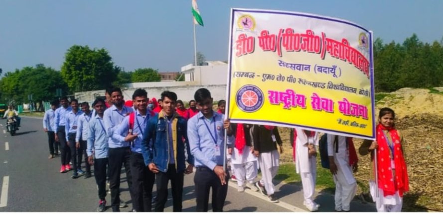 डी. पी स्नातकोत्तर महाविद्यालय सहसवान में उत्तर प्रदेश राज्य सड़क सुरक्षा जागरूकता अभियान के तहत एन एस एस व रोवर्स- रेंजर्स के छात्र छात्राओं ने जन सामान्य को सड़क सुरक्षा के लिए जागरूकता अभियान चलाने का प्रारंभ किया एवं सड़क सुरक्षा रैली द्वारा लोगों में जागरूकता पैदा की। प्राचार्या डॉ शुभ्रा माहेश्वरी के द्वारा हरी झंडी दिखाकर रैली को रवाना किया गया । कार्यक्रम आयोजक डॉ मुकेश राघव, दिव्यांश सक्सेना श्री ज्ञानेंद्र कश्यप के निर्देशन में रैली निकाली वहीं श्री विनोद यादव, वैभव तोमर , डॉ नीलोफर, प्रभात सक्सेना, भूपेंद्र माहेश्वरी,गुलनार, निक्की, तृप्ति, नितिन आदि के साथ पास की बस्ती में रहने वालों को यातायात के नियम समझाकर जाग्रत किया। छात्र हैदर, फरहा , इला, विशेष, आदि रहे।