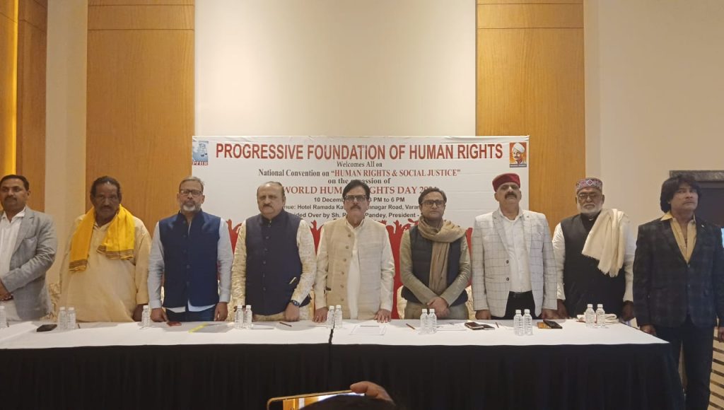 वाराणसी, आज विश्व मानवाधिकार दिवस 2024 के विश्वव्यापी पालन के हिस्से के रूप में प्रोग्रेसिव फाउंडेशन ऑफ ह्यूमन राइट्स (पीएफएचआर), गांधीनगर, गुजरात 10 दिसंबर, 2024 को होटल द रमाड़ा कटेसर, रामनगर रोड वाराणसी मे मानव अधिकार एवं सामाजिक न्याय पर राष्ट्रीय सम्मेलन का आयोजन कर रहा है। जिसमें देश की जानी मानी हस्तियां और 27 राज्यों के प्रतिनिधि भाग लेंगे। यह राष्ट्रीय सम्मेलन प्रोग्रेसिव फाउंडेशन ऑफ ह्यूमन राइट्स द्वारा पिछले 18 वर्षों से आयोजित किया जा रहा है।