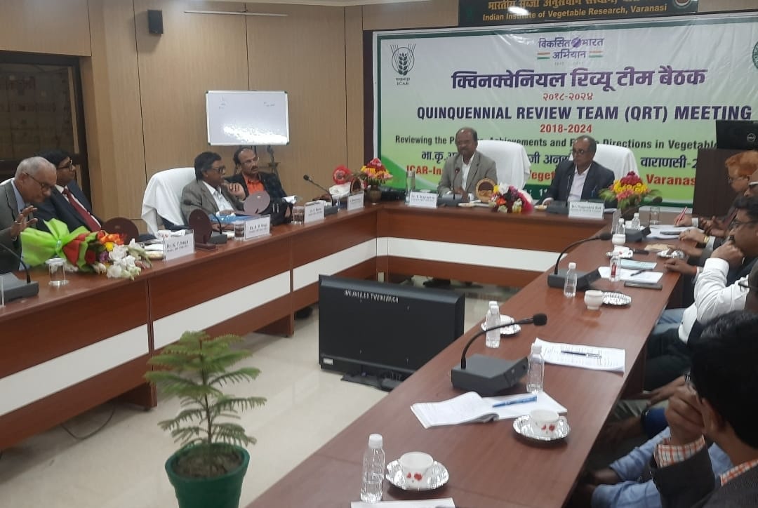 एक संस्थान के रूप में आईआईवीआर की प्रगति, उपलब्धियों, एवं भविष्य की योजनाओं की छःवार्षिक समीक्षात्मक बैठक शाहंशाहपुर कैंपस में प्रारंभ हुई। केरल कृषि विश्वविद्यालय के पूर्व कुलपति डॉ पी राजेंद्रन की अध्यक्षता में प्रारंभ हुई संस्थान की इस महत्वपूर्ण बैठक में कार्यकारी निदेशक डॉ नागेंद्र राय ने आईआईवीआर की उपलब्धियों के विषय में जानकारी दी। संस्थान के विभागों की ओर से डॉ अनंत बहादुर, डॉ ए एन सिंह और डॉ जगेश तिवारी ने उपलब्धियों के बारे में बताया और पूर्व में सम्पन्न हुई बैठक में दिए गए सुझावों पर किये गए कार्यों का विवरण दिया। क्यूआरटी के अध्यक्ष डॉ राजेंद्रन ने इस अवसर पर कृषि और खासकर सब्जी फसलों के लिए महत्वपूर्ण मुद्दों को उठाया जिन पर वैज्ञानिकों और पालिसी बनाने वालों को चिंतन की आवश्यकता है। इन मुद्दों में किसानों को अच्छे बीज की उपलब्धता के लिए बीज नेटवर्क की स्थापना, शहरी बागवानी हेतु बीज के मिनी किट की उपलब्धता की आवश्यकता, एवं संकर बीज उत्पादन को बढ़ाने हेतु पालेन बैंक के विकास पर जोर देने की जरूरत बताई गई। कमेटी में सदस्य बिधानचंद्र कृषि विश्वविद्यालय, पश्चिम बंगाल के डॉ प्रनब हाज़रा ने युवाओं को सब्जियों से जुड़ी मूल्य श्रृंखला में उद्यमी बनाने हेतु प्रेरित करने की आवश्यकता पर बल दिया। सदस्य उपनिदेशक भारतीय चिकित्सा अनुसन्धान परिषद हैदराबाद के डॉ के भास्कराचार्य ने सब्जियों में पोषक तत्वों का डेटाबेस और किसानों के लिए डिसिजन सपोर्ट सिस्टम विकसित करके सब्जी उत्पादकों तक नवीन तकनीकियों को पहुँचाए जाने पर जोर दिया। समिति के सदस्य बीएचयू के पूर्व प्रोफेसर एवं विभागाध्यक्ष डॉ हरिकेश बहादुर सिंह ने सब्जियों में किसानों द्वारा इस्तेमाल होने वाले रसायनों को कम करने हेतु माइक्रोबियल उपायों पर जोर देने और जैविक खेती के उन्नयन पर जोर देने की आवश्यकता बताई। सदस्य डॉ के पी सिंह ने उच्च गुणवत्ता की टेक्नोलॉजी को किसानों तक ले जाने के लिए उचित प्रशिक्षण कार्यक्रमों को चलाने की सलाह दी। प्रधान वैज्ञानिक डॉ नीरज सिंह ने संस्थान द्वारा किसान हित में किये जा रहे कार्यों का विवरण प्रस्तुत किया। एआईसीआरपी के अध्यक्ष डॉ राजेश कुमार ने टीम के समक्ष सब्जियों की देशव्यापी परियोजनाओं की कार्यवृत्ति पर विवरण प्रस्तुत किया। टीम के सदस्य सचिव डॉ आर के दुबे ने टीम के सदस्यों को सब्जी उत्पादन के अनुसंधान प्रक्षेत्र सहित प्रयोगशालाओं का भ्रमण कराया और पूर्व की समिति के सुझावों पर किये गए कार्यों का विवरण दिया गया। धन्यवाद ज्ञापन डॉ राजेश कुमार ने किया।