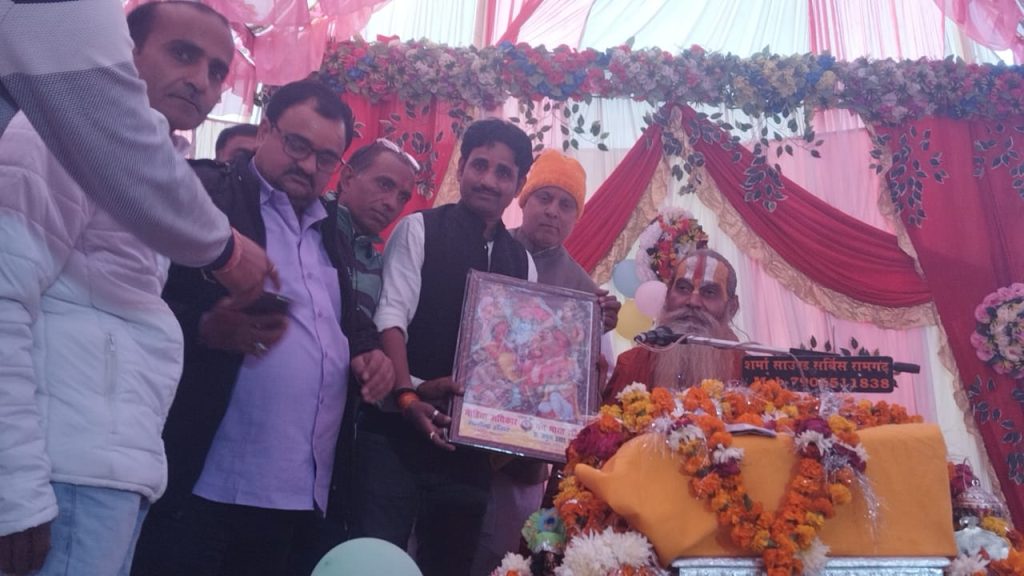 आज भागवत कथा में आचार्य श्री रामशरण दास महाराज को मीडिया अधिकार मंच भारत के राष्ट्रीय अध्यक्ष सतेन्द्र सेंगर, प्रदीप मिश्रा अमर उजाला पत्रकार सहित, प्रधान सचिव डा. जेपी राजपूत, महामंत्री अनिल अवस्थी, प्रधान सचिव अनिल कुमार, जिलाध्यक्ष बिबेक मिश्रा, बरिष्ठ पत्रकार रामजी पोरवाल, दिनेश शुक्ला,रजनीश कुमार,अनुज तिवारी, आदि साथियों नें भगवान राम दरवार देकर उन्हें फूल माला पहिनाकर सम्मानित करते उसने आशीर्वाद लिया है।