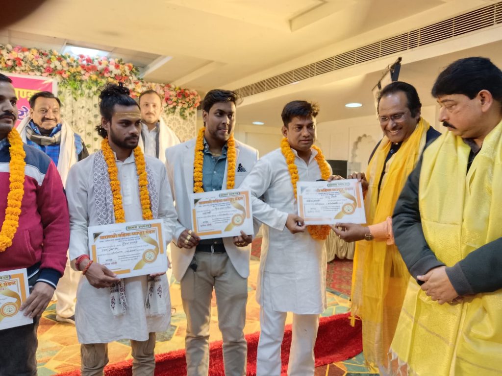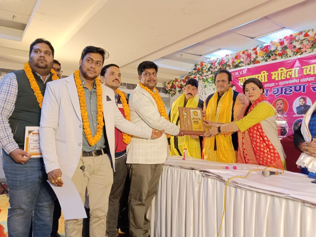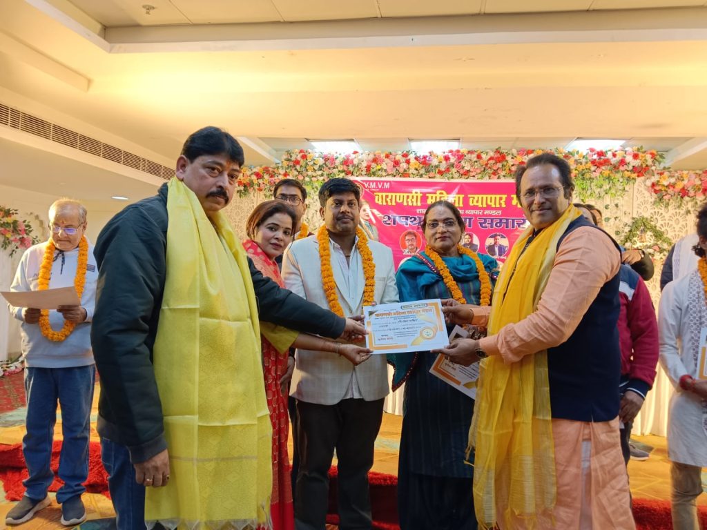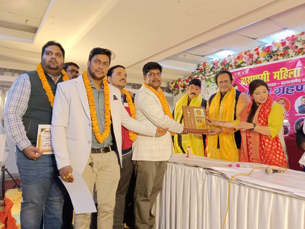 वाराणसी आज दिनांक 16.12.2024 को वाराणसी महिला व्यापार मंडल शाखा दशाश्वमेध व्यापार मंडल का शपथ ग्रहण समारोह काशी की शेरनी,विश्वप्रसिद्ध समाज सेविका एवंम संरक्षक सुनीता सोनी के नेतृत्व में शांति ग्रैंड पीडीआर मॉल लक्सा वाराणसी में आयोजित किया गया जिसकी मुख्य अध्यक्षता सुनीता सोनी के नैतिक में शपथ ग्रहण समारोह आयोजित किया गया जिसमें मुख्य अतिथि तिलक राज मिश्रा विशिष्ट अतिथि श्रीकांत पांडे द्वारा शपथ दिलाई गई जिसमें मुख्य रूप से दशाश्वमेध व्यापार मंडल के अध्यक्ष रवि शंकर पांडे महामंत्री शिव शंकर पांडे कोषाध्यक्ष राहुल सेठ उपाध्यक्ष राजेश गुप्ता शाकोषा अध्यक्ष गणेश शंकर पांडे मीडिया प्रभारी राजू सोनी उपाध्यक्ष आदित्य गोयनका स्टार प्रचारक मुकेश शास्त्री पद के दायित्व पर नव नियुक्त किया गया और सभी लोगों को शपथ दिलाई गई रवि शंकर पांडे ने अपने पद का निर्वहन करते हुए अपने संगठन में मजबूती से कार्य करेंगे इसकी शपथ ली और अपने संगठन को मजबूती करेंगे कहा वाराणसी महिला व्यापार मंडल अध्यक्ष सुनीता सोनी ने बताया वाराणसी महिला व्यापार मंडल अपने काशी के सभी व्यापारियों के साथ है अगर कोई व्यापारी उत्पीड़न किया जाता है तो यह व्यापार मंडल कंधे से कंधा मिलाकर उस व्यापारी का सहयोग करेगा जिसमें मौजूद एडवोकेट वेद प्रकाश गौतम राहुल सिंह रवि कुमार हमराजसाबरी तोहिद अहमद आकाश साहनी सुनील गुप्ता सुरेंद्र गुप्ता ममता गुप्ता नाजिया बेगम रेखा देवी शबाना बानो शकुंतला देवी अंशु सोनी गणेश मिश्रा ईशान अहमद राजकुमार सोनकर विकास सोनकर रवि विश्वकर्मा रोहित सेठ धीरेंद्र शर्मा शिव सोनकर ऐश्वर्या सोनी इरशाद मोहिन खान कैफे एमडी रुस्तम इमरोज साम्राज्य इरफान मिराज फिरदौस आदि लोग उपस्थित रहे