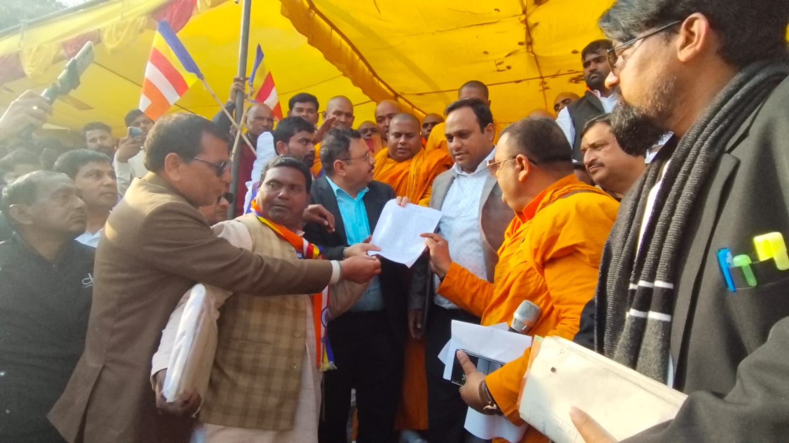 बदायूं बौद्धिसत्व बाबा साहब डॉ भीमराव अम्बेडकर सम्राट अशोक बुद्ध पर्यटन स्थल संरक्षण मंडल बदायूं के तत्वावधान में पांचवें दिन सोमवार को भी मालवीय आवास गृह पर धरना जारी रहा। पूर्व पूर्व नोटिस के अनुसार हजारों की संख्या में बुद्धिस्ट मालवीय आवास गृह पहुंचे और भिक्षुसंघ को सम्मान सहित बुद्ध बिहार मझिया में प्रवेश कराए जाने,पर्यटन स्थल को सरकारी अभिलेखों में दर्ज कराए जाने ,7/12/2024 को भिक्षुओं के साथ घटित घटना व तथागत बुद्ध की प्रतिमा को खंडित करने वाले दोषियों के विरुद्ध कठोर से कठोर कानूनी कार्यवाही किए जाने की मांग की धरना स्थल पर बौद्ध भिक्षु सुमित रतन भिक्षु संघ के साथ पहुंचे संकिसा की धरती से सुरेश बौद्ध के साथ दर्जनों बौद्ध उपासक धरना स्थल पर पहुंचे हैं । धरने को संबोधित करते हुए देश दुनिया में बौद्ध धम्म की अलख जगाने वाले बौद्ध भिक्षु सुमित रतन ने कहा कि बदायूं प्रशासन को 5 दिन का समय है 5 दिन के अंदर सम्मान सहित बौद्ध भिक्षुओं को माझिया पहुंचाया जाए अन्यथा की स्थिति में 21 दिसंबर को मैं हजारों बुद्धिस्टों के साथ धरना स्थल से सीधे माझिया के लिए कुच् करुंगा जिसमें किसी भी प्रकार की होने वाली क्षतिपूर्ति की जिम्मेदारी प्रशासन की होगी पूरे देश में बुद्धिस्ट विरासत के साथ किसी भी प्रकार का खिलवाड़ हम बर्दाश्त नहीं करेंगे वही बौद्ध महा उपासक डॉ क्रांति कुमार ने कहा कि बुद्धिस्ट शांतिप्रिय होते हैं हम लोग संवैधानिक अधिकारों का प्रयोग करते हुए धरना प्रदर्शन कर रहे हैं प्रशासन को सा सम्मान बौद्ध भिक्षुओं को माझिया पहुंचना चाहिएlकार्यक्रम में डॉ नवल किशोर शाक्य फर्रुखाबाद आगम मौर्य बरेली रामेश्वर शाक्य आरपी त्यागी जिला अध्यक्ष बहुजन समाज पार्टी जयपाल सिंह मंडल प्रभारी बहुजन समाज पार्टी रवि मौर्य सूरज शाक्य एडवोकेट आरपी मौर्य दिल्ली चरन सिंह यादव जनहित सत्याग्रह मोर्चा आदि वक्ताओं ने अपने-अपने विचार व्यक्त किए।।इस मौके पर रामेश्वर शाक्य,डा.क्रांति कुमार महाउपासक, चिरंजी लाल एडवोकेट, प्रेमपाल ठाकुर धीरेंद्र कुमार सिंह सुनील कुमार जय सिंह आनंद भारती एडवोकेट अरुण कुमार डा.सतीश, इंजीनियर हर्षवर्धन,हरिओम सैनी, अरविंद कुमार,वीरेन्द्र जाटव,नंदराम शाक्य,राधेलाल बौद्ध,सविता डॉ अजीत बाबू मृदुलेश यादव रामलाल मौर्य अंबेडकर,मधु बौद्ध,चरन सिंह,रवि मौर्या,मुकेश मौर्य सतपाल शाक्य, मुकेश कुमार मौर्य,रामप्रकाश पूर्व प्रवक्ता मोर्चा संरक्षक आदि सम्मिलित हुए।