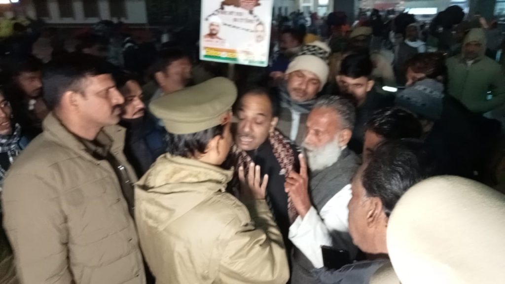 वाराणसी बढ़ती हुई महंगाई बेरोजगारी भ्रष्टाचार किसानों मजदूरों नौजवानों का हो रहे शोषण के खिलाफ प्रदेश कांग्रेस कमेटी के अध्यक्ष अजय राय के नेतृत्व में लखनऊ विधानसभा का हेतु जा रहे कांग्रेस कार्यकर्ताओं को कैट स्टेशन सर भारी पुलिस फोर्स ने एसीपी चेतगंज गौरव कुमार ने कांग्रेस कार्यकर्ताओं को लखनऊ जाने से रोकने के लिए गिरफ्तार करने का प्रयास किया इसके विरोध में कांग्रेस कार्यकर्ता महानगर अध्यक्ष श्री राघवेंद्र चौबे जी के साथ जमीन पर बैठ गए बाद में भारी पुलिस फोर्स ने जबरदस्ती कांग्रेस कार्यकर्ताओं को बस में बैठाया इस दौरान महानगर अध्यक्ष की पुलिस से काफी नोक जोख हुईं के बाद कांग्रेस कार्यकर्ताओं को गिरफ्तार कर पुलिस लाइन लाया गया