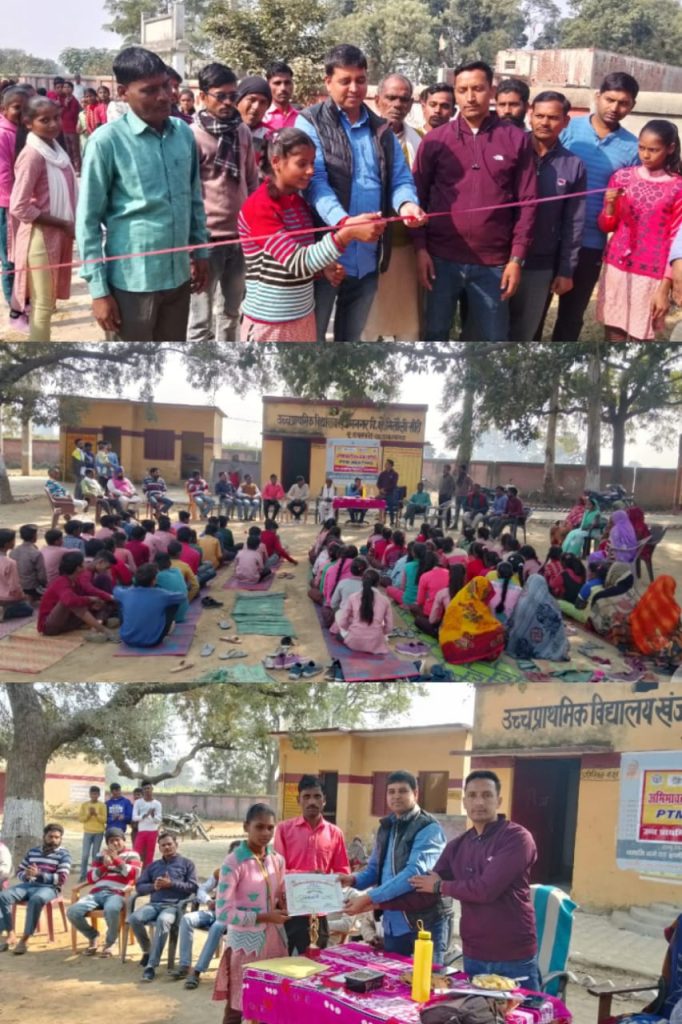 ग्राम पंचायत खंजन नगर के उच्च प्राथमिक विद्यालय में खेल प्रतियोगिता के अंतर्गत मंडल स्तर पर विजई बच्चों को प्रधान प्रतिनिधि अवधेश कुमार के द्वारा पुरस्कृत किया गया। अभिभावक शिक्षक बैठक में बच्चों के उपस्थिति के संबंध में विद्यालय के प्रधानाचार्य सतीश कुमार ने चर्चा करते हुए स्कूल के बच्चों द्वारा खेल में जिले में प्रथम मंडल स्तर पर तृतीय स्थान प्राप्त करने वाले बच्चों का उत्साह वर्धन किया । इसी क्रम में सभी 19 पैरामीटर शौचालय का उद्घाटन प्रधान प्रतिनिधि अवधेश कुमार ने फीता काट कर किया।