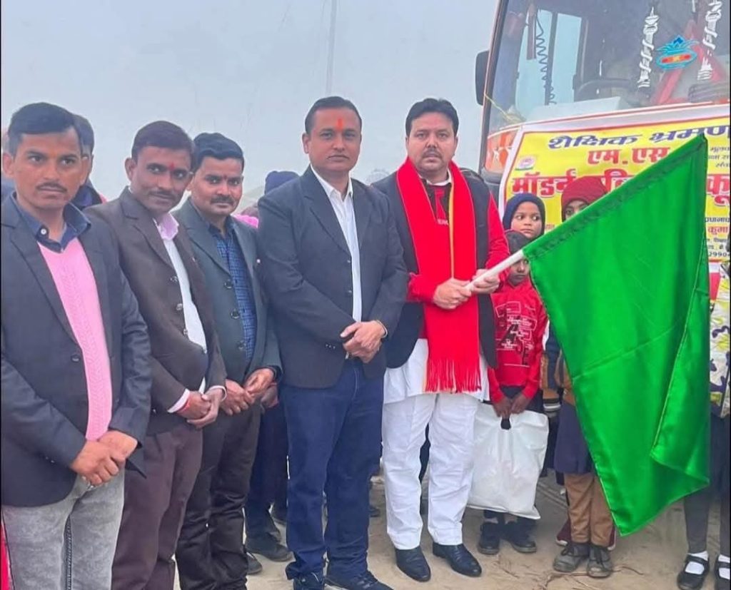 लखीमपुर खीरी के गोला विधानसभा के पूर्व विधायक प्रत्याशी सिद्धार्थ शुक्ला ने आज जनपद लखीमपुर खीरी ग्राम बसही सिसावां कलां रोड़ स्थित मूलचंद सिंह मॉडर्न पब्लिक स्कूल द्वारा छात्र एवं छात्राओं के लिए शैक्षिक भ्रमण (लखनऊ चिड़ियाघर, लखनऊ साइंस सिटी, लखनऊ अंबेडकर पार्क) का आयोजन किया गया उक्त कार्यक्रम में पूर्व विधायक प्रत्याशी गोला सिद्धार्थ शुक्ला के द्वारा शैक्षिक भ्रमण दल को हरी झंडी दिखाकर समस्त विद्यालय स्टाफ एवं छात्र छात्राओं को लखनऊ किया रवाना इस मौक़े पर विद्यालय के प्रधानाचार्य संजीव दीक्षित एवं विद्यालय के प्रबंधक प्रहलाद सिंह चौहान एवं विद्यालय के अध्यक्ष धीरेंद्र सिंह एवं विद्यालय के कोषाध्यक्ष सुनील सिंह द्वारा मुख्य अतिथि का स्वागत किया गया