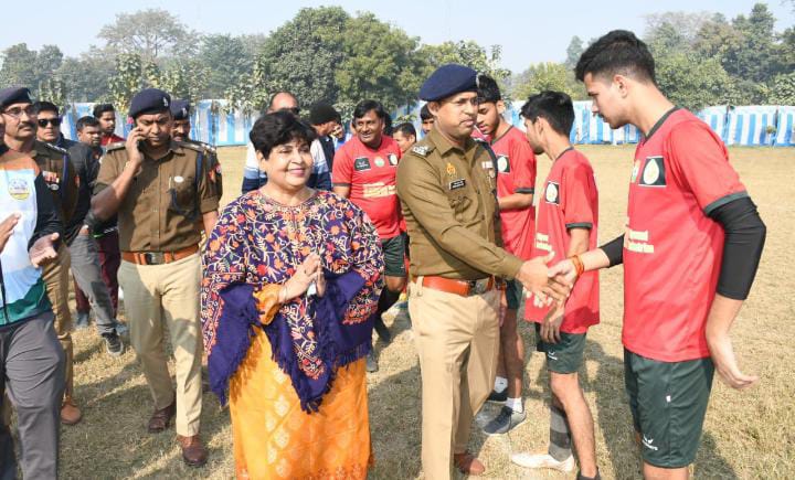 इसी क्रम में आज दिनांक 22.12.2024 को फुटबॉल प्रतियोगिता का आयोजन रिजर्व पुलिस लाइन परिसर लखीमपुर खीरी में किया गया। जिसमें मुख्य अतिथि के तौर पर पुलिस अधीक्षक खीरी गणेश प्रसाद साहा द्वारा फीता काटकर खेल का शुभारंभ किया गया । इस अवसर पर अपर पुलिस अधीक्षक (पूर्वी) पवन कुमार गौतम, क्षेत्राधिकारी धौरहरा पीतम पाल सिंह , क्षेत्राधिकारी मोहम्मदी अरुण कुमार सिंह, प्रतिसार निरिक्षक पवन भाटी व नगर पालिका अध्यक्ष ईरा श्रीवास्तव आदि गणमान्य लोग उपस्थित रहें । पुलिस अधीक्षक द्वारा खिलाड़ियों के साथ फोटो खिंचवाकर व हाथ मिलाकर उत्साहवर्धन किया गया।