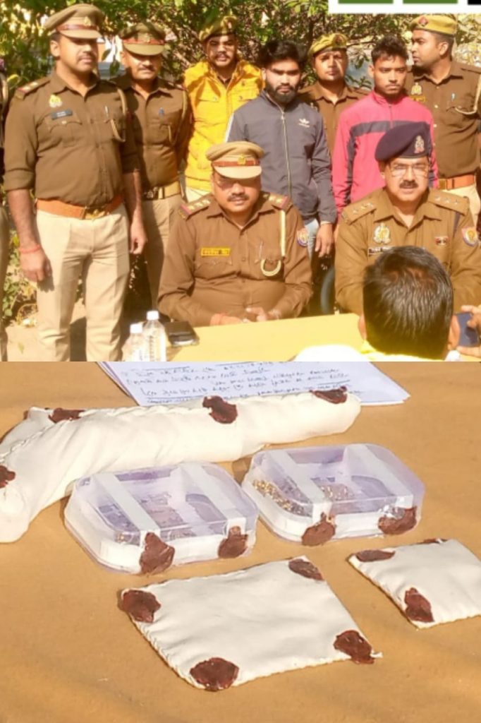 पुलिस अधीक्षक खीरी गणेश प्रसाद साहा के द्वारा जनपद लखीमपुर खीरी में अपराधियों के विरुद्ध चलाये जा रहे अभियान के तहत व अपर पुलिस अधीक्षक के पर्यवेक्षण में एवं क्षेत्राधिकारी गोला व प्रभारी निरीक्षक गोला -जिला खीरी के कुशल दिशा -निर्देशन में वादी अनुज वर्मा पुत्र धर्मपाल वर्मा ,निवासी मोहल्ला ऊंचीभूड कस्बा व थाना गोला जनपद लखीमपुर खीरी की चेन अज्ञात व्यक्ति द्वारा छीन लेने के संबंध में थाना स्थानीय पर दिनांक 19.12.2024 को पंजीकृत मुकदमा संख्या 698/2024 धारा 304 (2) बीएनएस से संबंधित अभियुक्त की तलाश थाना पुलिस टीम द्वारा की जा रही थी। जिसमें सीसीटीवी फुटेज की मदद व मुखबिर की सूचना पर दिनांक 21.12.2024 को समय 06.20 बजे रसूलपुर मोड़ से थाना गोला पुलिस टीम द्वारा छिनैती करने वाले शातिर अभियुक्तगण 1. शिवांशु मिश्रा उर्फ बजरंगी पुत्र आनंद किशोर मिश्रा निवासी लालपुर बैरियर थाना कोतवाली सदर लखीमपुर जिला खीरी उम्र करीब 22 वर्ष 2. शाह आलम खान उर्फ आलम पुत्र रजीउल्ला निवासी मोहल्ला ऊंचीभूड कस्बा का थाना गोला जिला लखीमपुर खीरी उम्र 20 वर्ष को गिरफ्तार किया गया (कीमत करीब 107000 रुपए) व एक अदद नाजायज तमंचा .12 बोर एक अदद जिंदा कारतूस 12.बोर बरामद किया। घटना का सफल अनावरण किया गया। बरामदगी के आधार पर मुकदमा उपरोक्त में धारा 317(2)BNS व 3/25 आर्म्स एक्ट की बढ़ोतरी की गई है। गिरफ्तार शुदा अभियुक्त के विरुद्ध थाना हाजा से विधिक कार्यवाही की जा रही है।