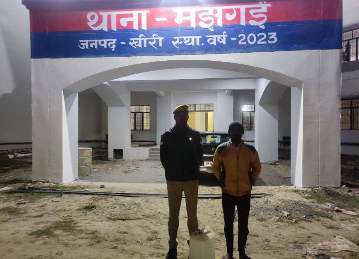 पुलिस अधीक्षक खीरी द्वारा संपूर्ण जनपद में अवैध कच्ची शराब उत्पादन/बिक्री के विरुद्ध चलाए जा रहे अभियान के अंतर्गत व अपर पुलिस अधीक्षक खीरी के सन्निकट पर्यवेक्षण व क्षेत्रधिकारी पलिया के कुशल मार्गदर्शन व प्रभारी निरीक्षक के कुशल नेतृत्व में थाना मझगई पुलिस टीम द्वारा दिनांक 22.12.2024 को ग्राम मटेहिया मोड़, बहद ग्राम गुलराभगवन्तनगर थाना मझगई जिला खीरी से अभियुक्त दिनेश कुमार पुत्र चन्द्रभाल नि0 ग्राम गुलरा भगवन्तनगर थाना मझगई जिला खीरी के कब्जे से एक अदद प्लास्टिक की पिपिया में कुल 15 लीटर अवैध देशी शराब के साथ गिरफ्तार कर अभियोग मु0अ0स0 399/2024 धारा 60 EX ACT पंजीकृत कर अग्रिम विधिक कार्यवाही की जा रही है। जानकारी अनुसार