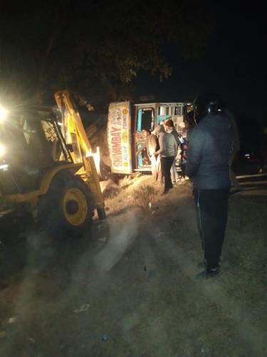 लखीमपुर खीरी। मोहम्मदी क्षेत्र में शाहजहांपुर स्टेट हाईवे पर वैगास भरा ट्रक अनियंत्रित होकर पलट गया। जिससे दो बाइक सवार नीचे दब गए। जिससे चीख पुकार मचाने पर राहगीर और सूचना पर पहुंची पुलिस के सहयोग से बाइक सवार दो लोगों को निकाला गया जिन्हें उपचार के लिए एंबुलेंस से सरकारी अस्पताल में भर्ती कराया गया जहां डॉक्टर ने नन्हे पुत्र नंदलाल 40 वर्ष और रामू पुत्र सुभाष 45 वर्ष को जांच के दौरान दोनों को मृत घोषित कर दिया है। पुलिस ने क्रेन और जेसीबी के सहयोग से मलबे को हटाने मे लगी है। हादसे के बाद दूर-दूर तक हाइवे पर लंबी वाहनों की कतारे लग गई है। बचाव और राहत कार्य के लिए कई थानों का फोर्स रेस्क्यू ऑपरेशन में जुटा है।