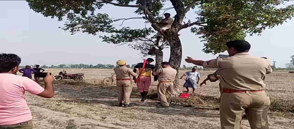 आपको बता दें कि निचलौल थाना क्षेत्र के ग्राम सभा हरदी के सिवान में शुक्रवार की सुबह जब लोग अपने खेत की तरफ निकले तो पेड़ पर लटकता शव देखकर शोर मचाना शुरू कर दिए,बात कानों कान आस पास के गांव तक फैल गयी और देखते ही देखते भारी संख्या में लोग इकट्ठा हो गए ।