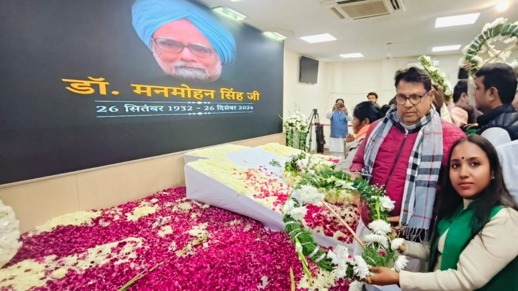 प्रदेश कांग्रेस कमेटी की सचिव रजनी वागी ने श्रद्धांजलि अर्पित करते हुए कहा कि आज देश ने बहुत ईमानदार और योग राजनीतिज्ञ खो दिया है जिसने मौन रहते हुए भी सब कुछ करके दिखाया इस देश के हित में। दिल्ली अकबर रोड पर प्रधानमंत्री डॉक्टर मनमोहन सिंह के लिए पार्थिव शरीर के दर्शन करने वालों एवं श्रद्धांजलि देने वाले में नितिन कुमार ,दीपक कुमार ,प्रवेश कुमार ,कासिम अंसारी नेत्रपाल, दिनेश कुमार, अधिकार्यकर्ता पदाधिकारी उपस्थित रहे।