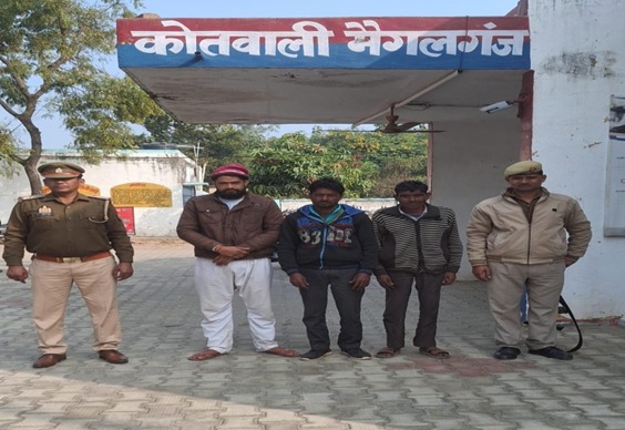 पुलिस अधीक्षक खीरी, गणेश प्रसाद साहा के निर्देशन व अपर पुलिस अधीक्षक खीरी के निकट पर्यवेक्षण में सम्पूर्ण जनपद में अपराध की रोकथाम व वांछित/वारंटी अभियुक्तों की गिरफ्तारी हेतु चलाए जा रहे अभियान के अंतर्गत आज दिनांक 29.12.2024 को थाना मैगलगंज पुलिस द्वारा विभिन्न अभियोगो से सम्बन्धित 03 नफर वारंटी अभियुक्तगण 1.नीरज पुत्र परशराम नि0 ग्राम कलुआमोती थाना मैगलगंज जनपद खीरी सम्बन्धित मु0नं0 565/21 अ0सं0 202/21 धारा 323/5047/506 भा0द0वि0 थाना मैगलगंज खीरी, 2.रामनरेश पुत्र रामकिशुन पासी नि0 ग्राम परसेहरा थाना मैगलगजं जनपद खीरी, 3.राजेन्द्र उर्फ बच्चू पुत्र रामसिंह नि0ग्राम ककरहिया थाना मैगलगजं जनपद खीरी सम्बन्धित मु0नं0 79/22 अ0सं0 496/21 धारा 60 आब0अधि0 थाना मैगलगंज खीरी,को गिरफ्तार कर विधिक कार्यवाही कर माननीय न्यायालय भेजा जा रहा है ।