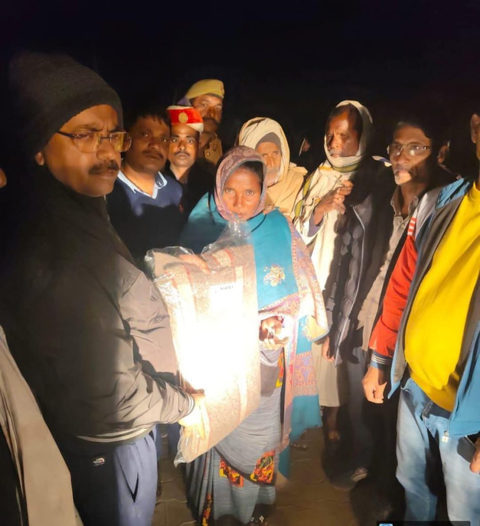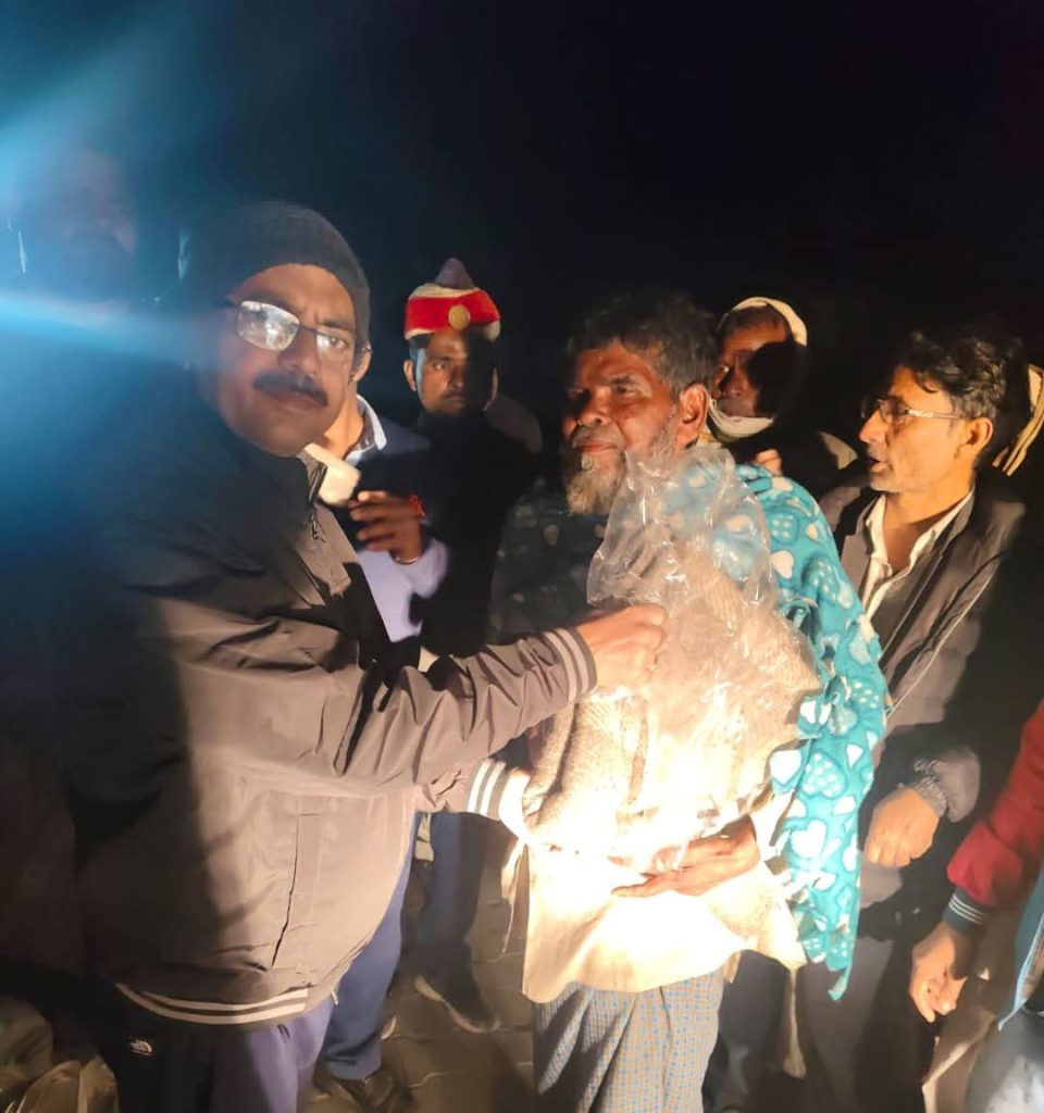 लखीमपुर। कड़ाके की ठंड से जूझ रहे गरीब और बेसहारा लोगों की मदद के लिए लखीमपुर सदर के एसडीएम अश्विनी कुमार सिंह ने देर रात अपने दल के साथ नगर क्षेत्र में भ्रमणशील रहकर जरूरतमंद लोगों की खोज की और उन्हें कंबल वितरित किए। एसडीएम ने जल रहे अलाव का निरीक्षण किया और ठंड से राहत देने की व्यवस्था का जायजा लिया। उन्होंने बताया कि ठंड के इस दौर में प्रशासन पूरी तरह से कटिबद्ध है कि कोई भी बेसहारा व्यक्ति ठंड के कारण परेशान न हो।