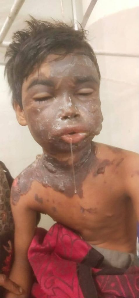 गर्म तेल से बालक का झुलसा चेहरा।